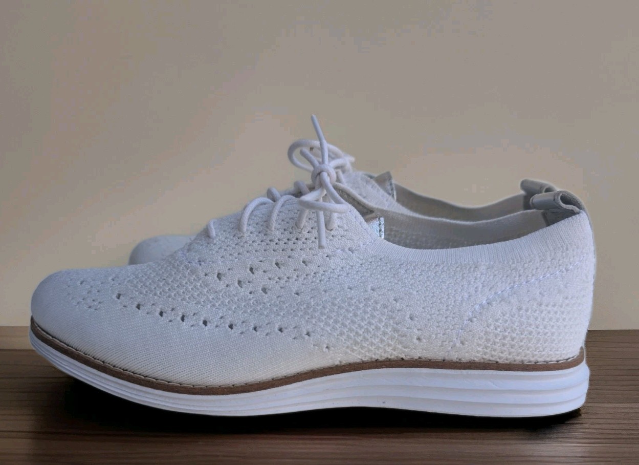 Cole Haan Womens Grand Stitchlite Wingtip Oxford White Knit Shoe W11514 Size 7B