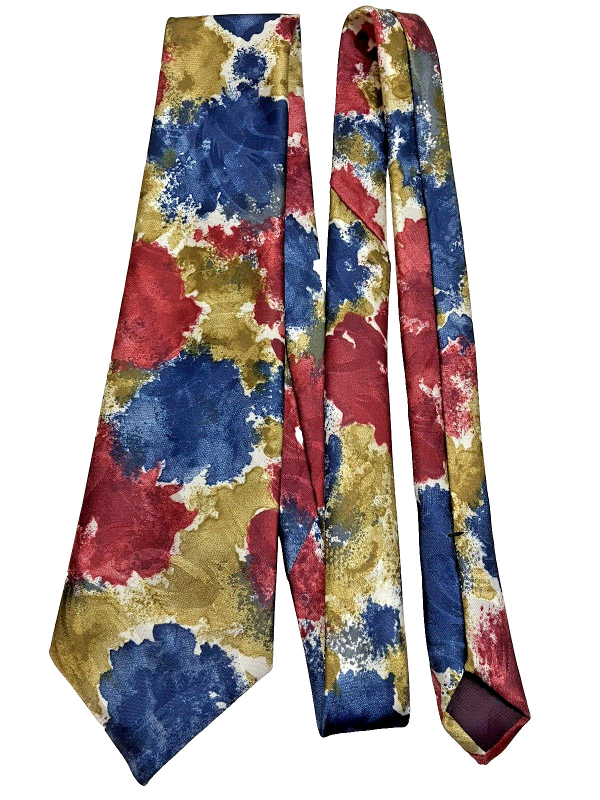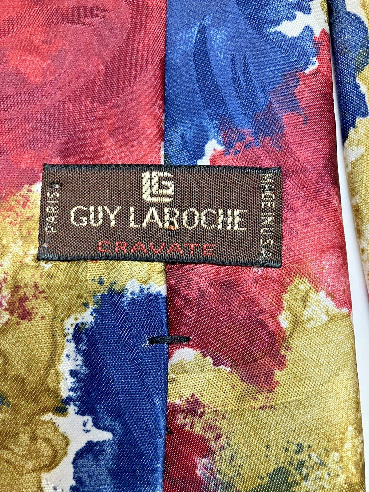 VTG GUY LAROCHE Mens 100 SILK USA Handmade Color Burst Floral Tie 3.75W 59L