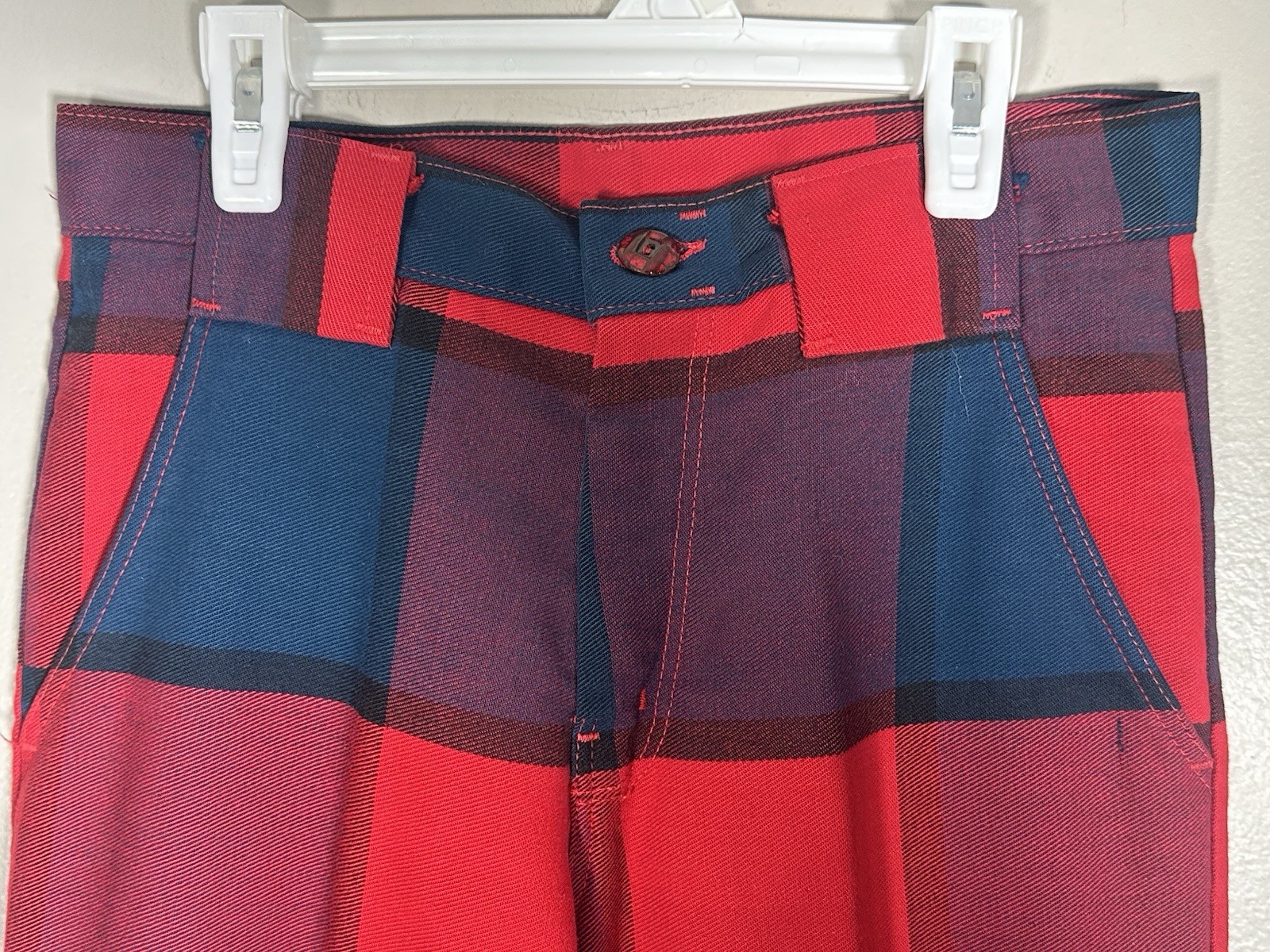Vintage 70s Plaid Wide Leg Flare Bell Bottom Pants 28 X 32 Red Blue