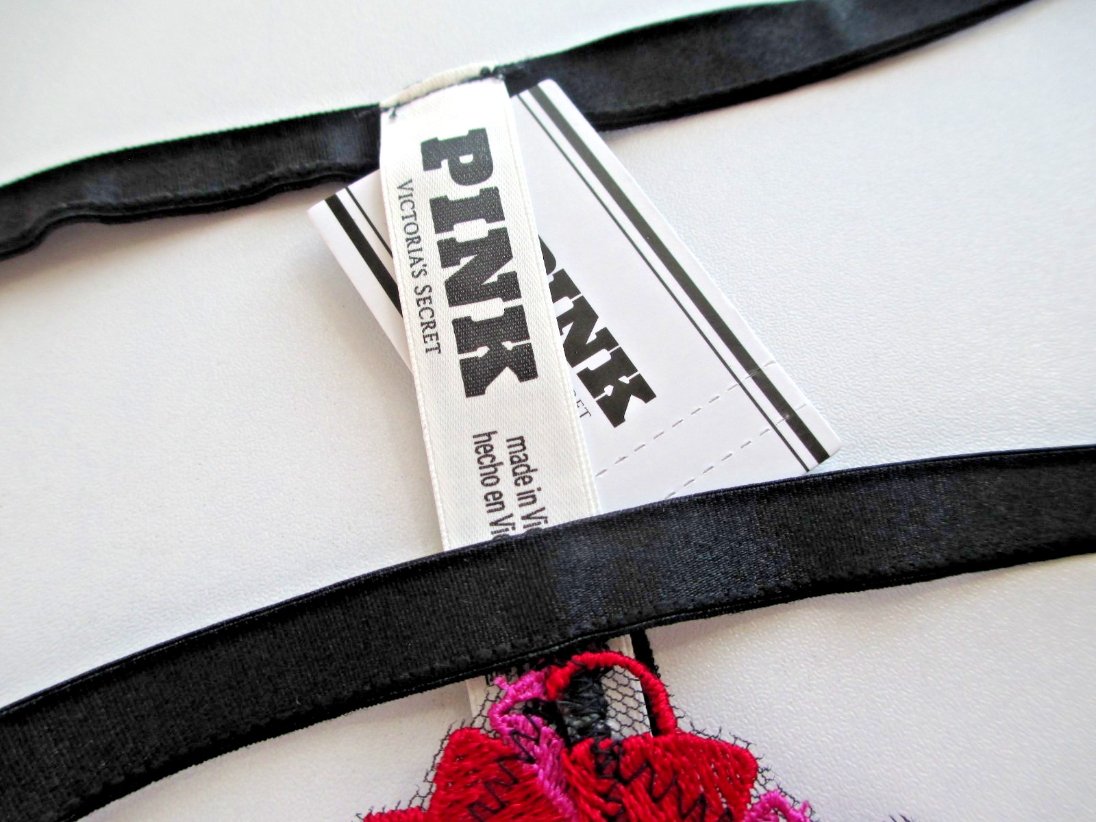 как выглядит VICTORIAS SECRET PINK Wink V-String Thong Panty S M L XL Black Heart Embroidery фото