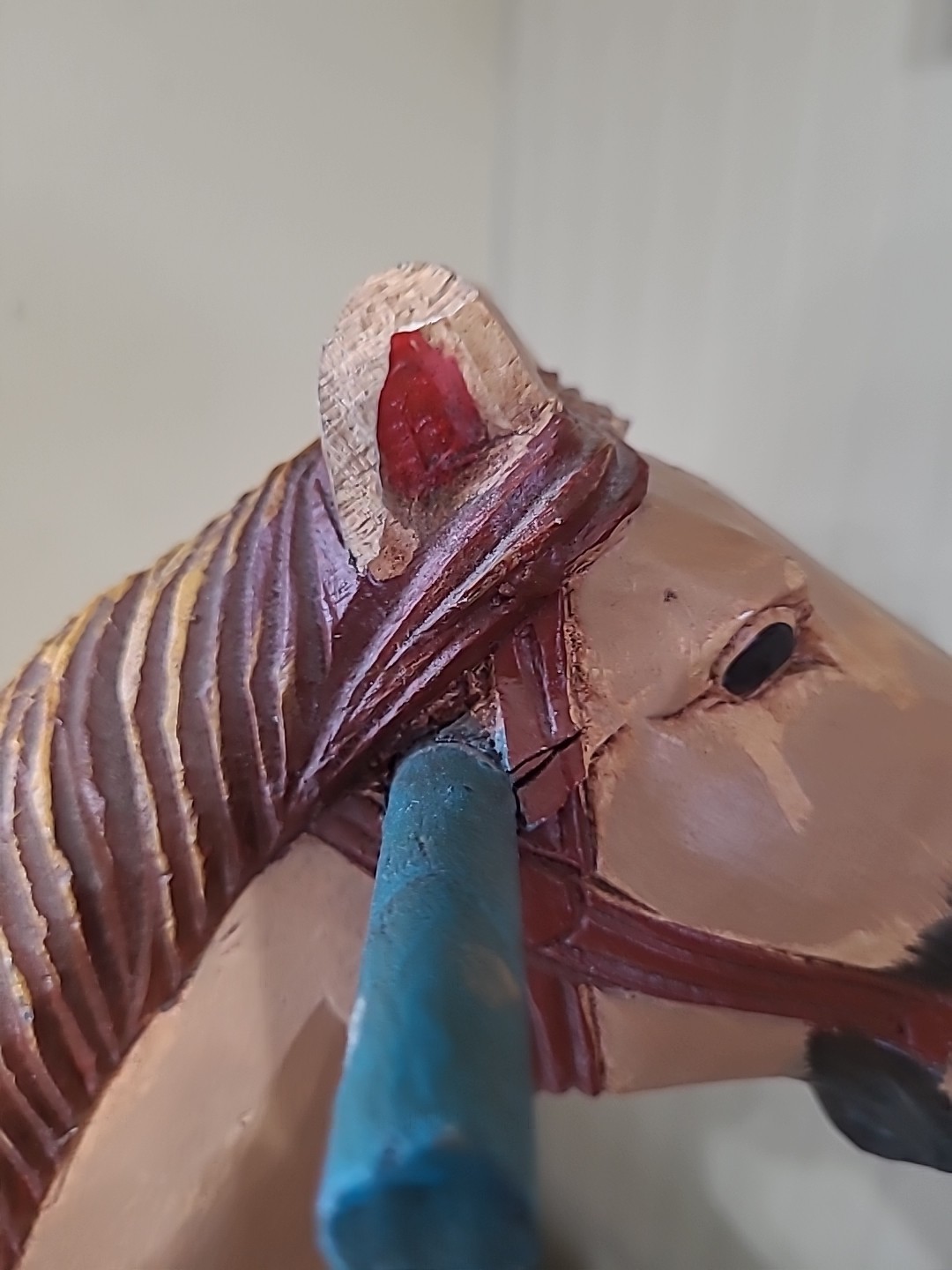 как выглядит Vintage Hand Carved Wood hand Painted Rocking Carousel Horse-Real Horse Tail фото