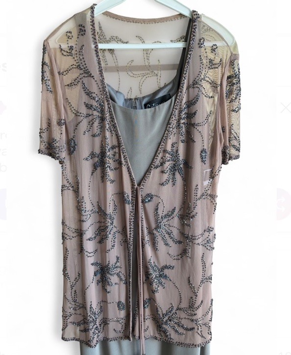 Mother of the bride Sz 6 dress beaded formal Gown Shawl Grey Wedding Guest Dress