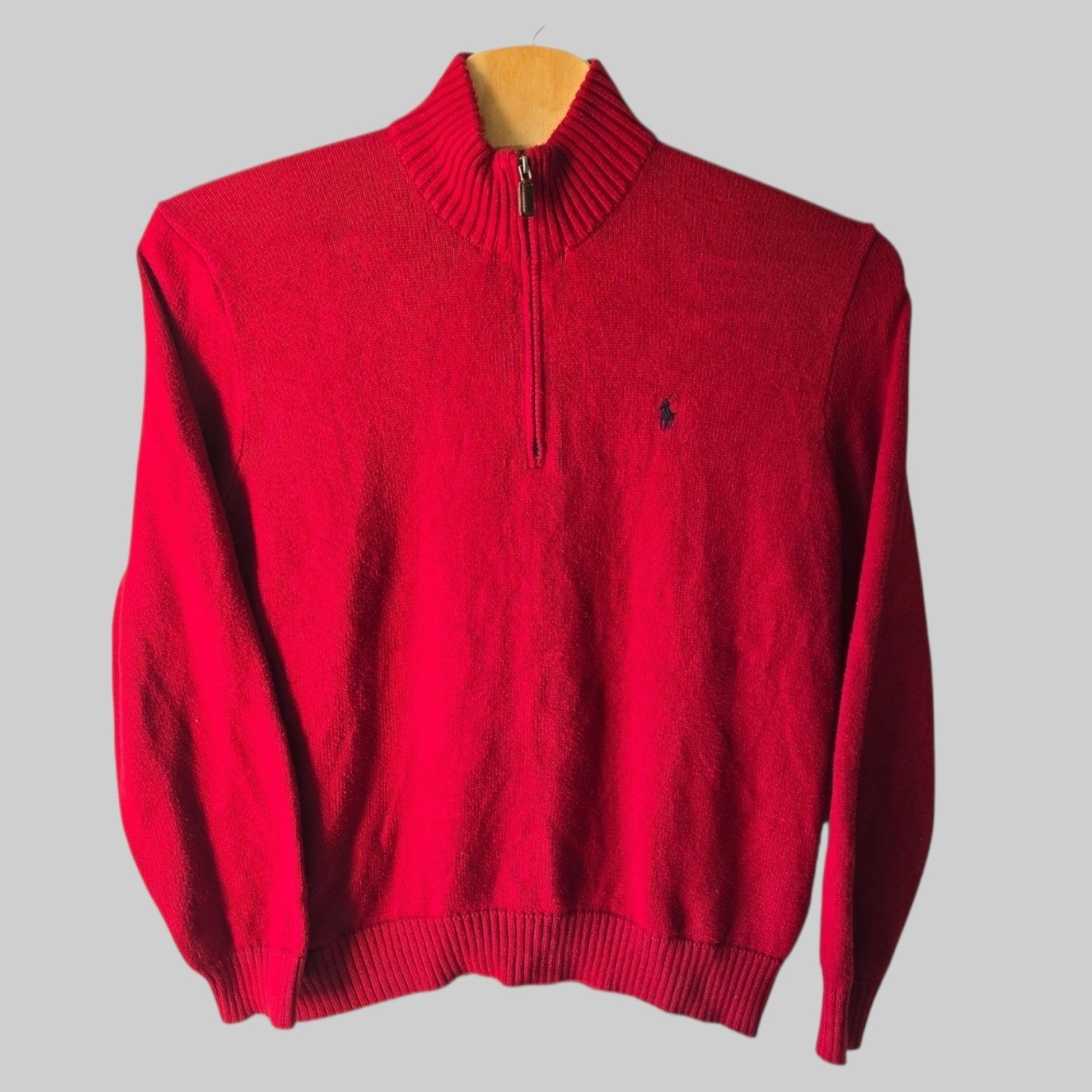 Polo Ralph Lauren Men's Red Quarter Zip Sweater Classic Fit Embroidered Pony