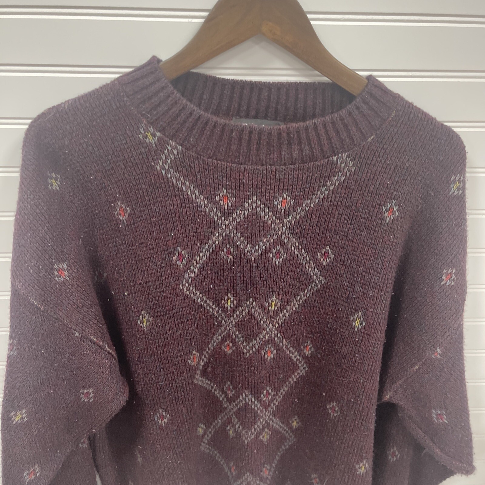 как выглядит Vintage Reed St James Sweater Multicolor Diamond Print Sweater USA Mens Large фото