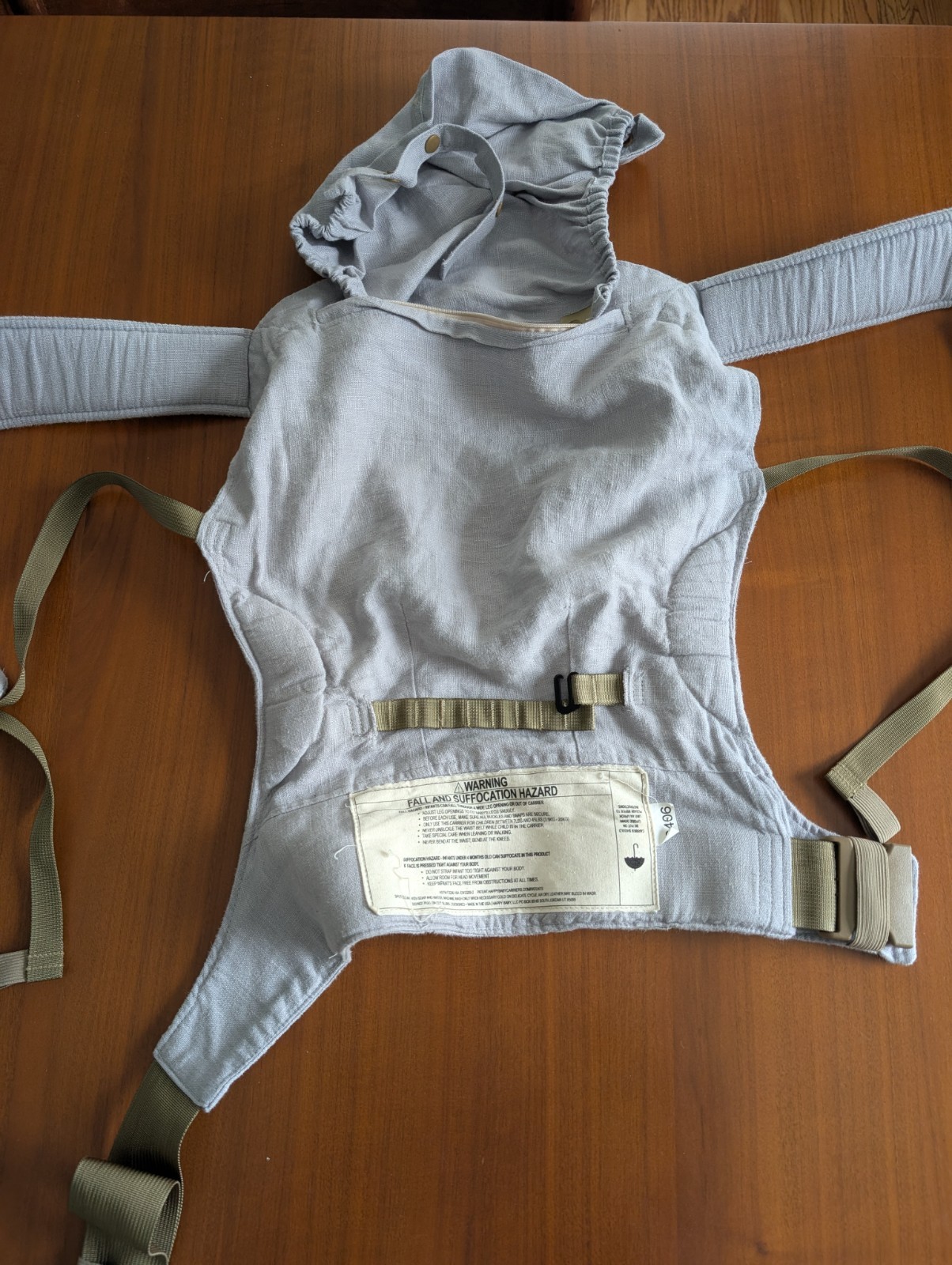 как выглядит Happy Baby Carrier original carrier in French Grey with tan webbing in GUC фото