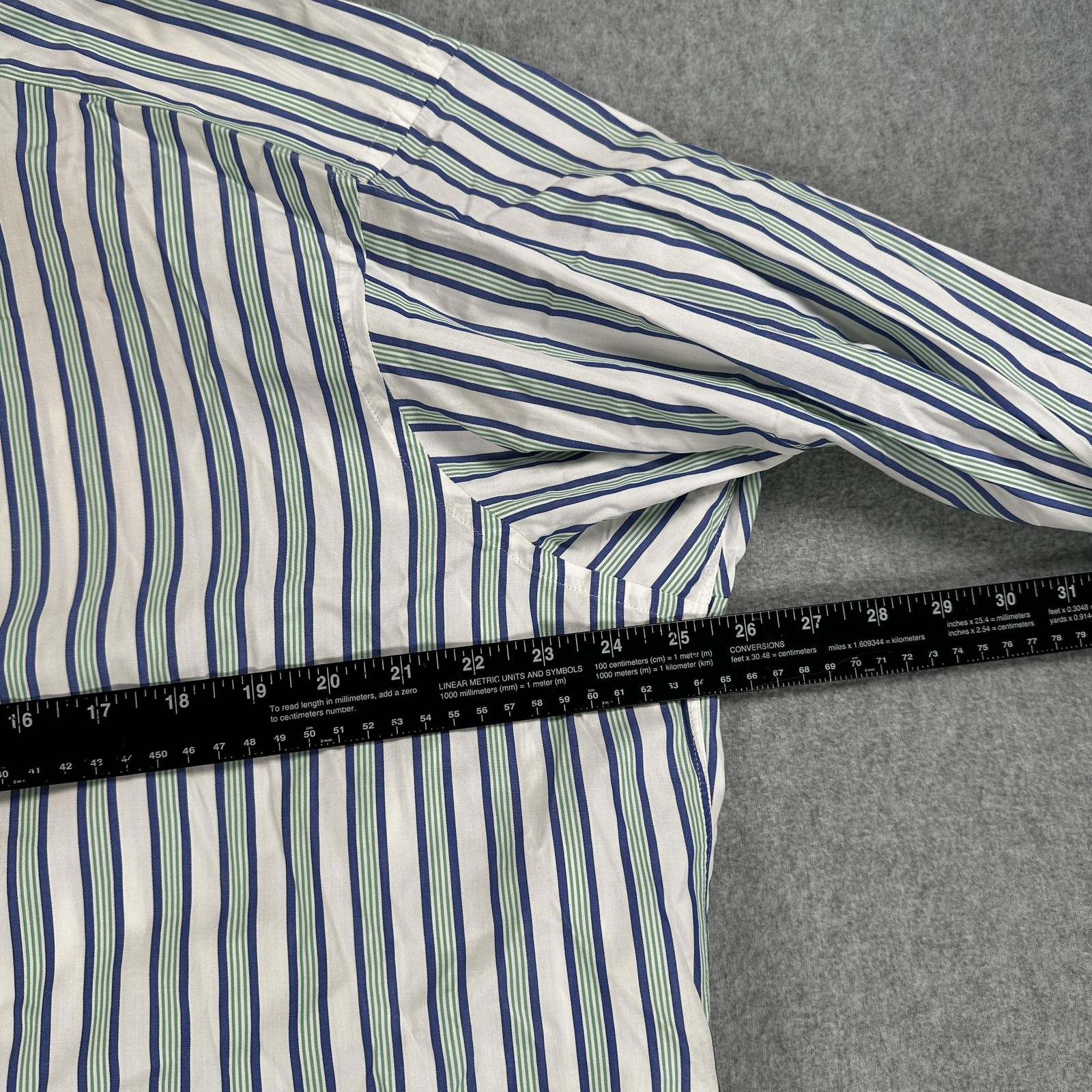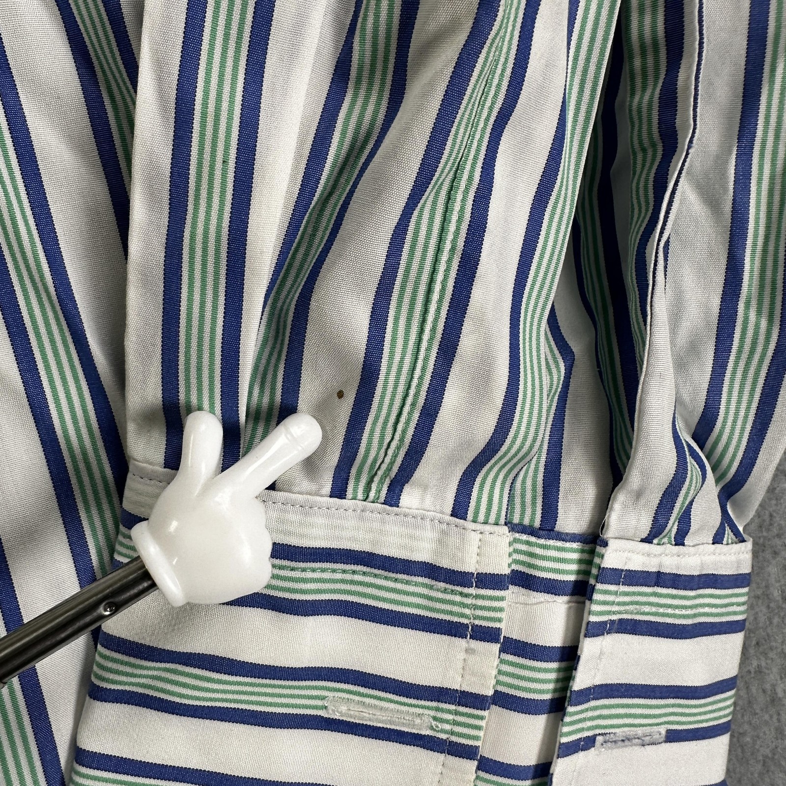 как выглядит Turnbull Asser Dress Shirt Mens 17.5/44 Blue Green Stripe French Cuff England фото