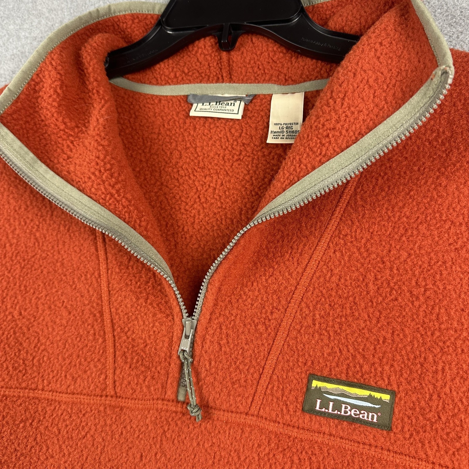 как выглядит L.L.Bean Katahdin Sweater Mens Large Orange Fleece 1/4 Zip Mock Neck Pullover фото