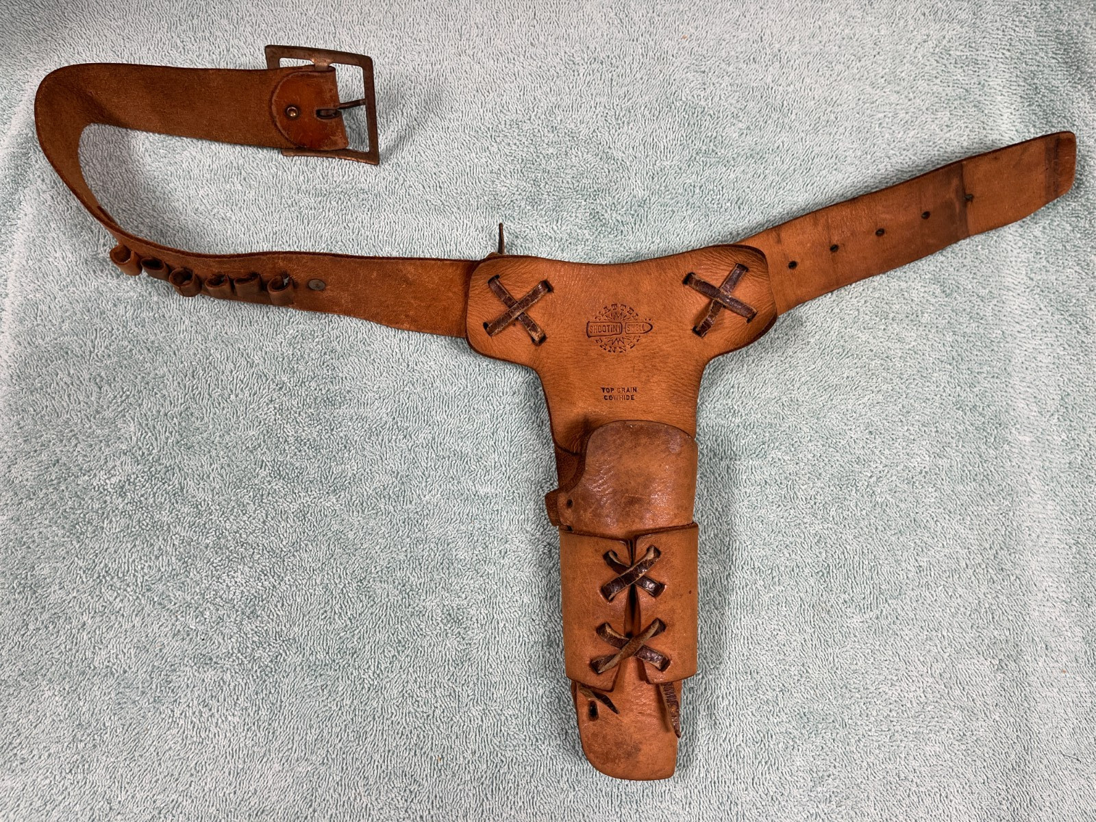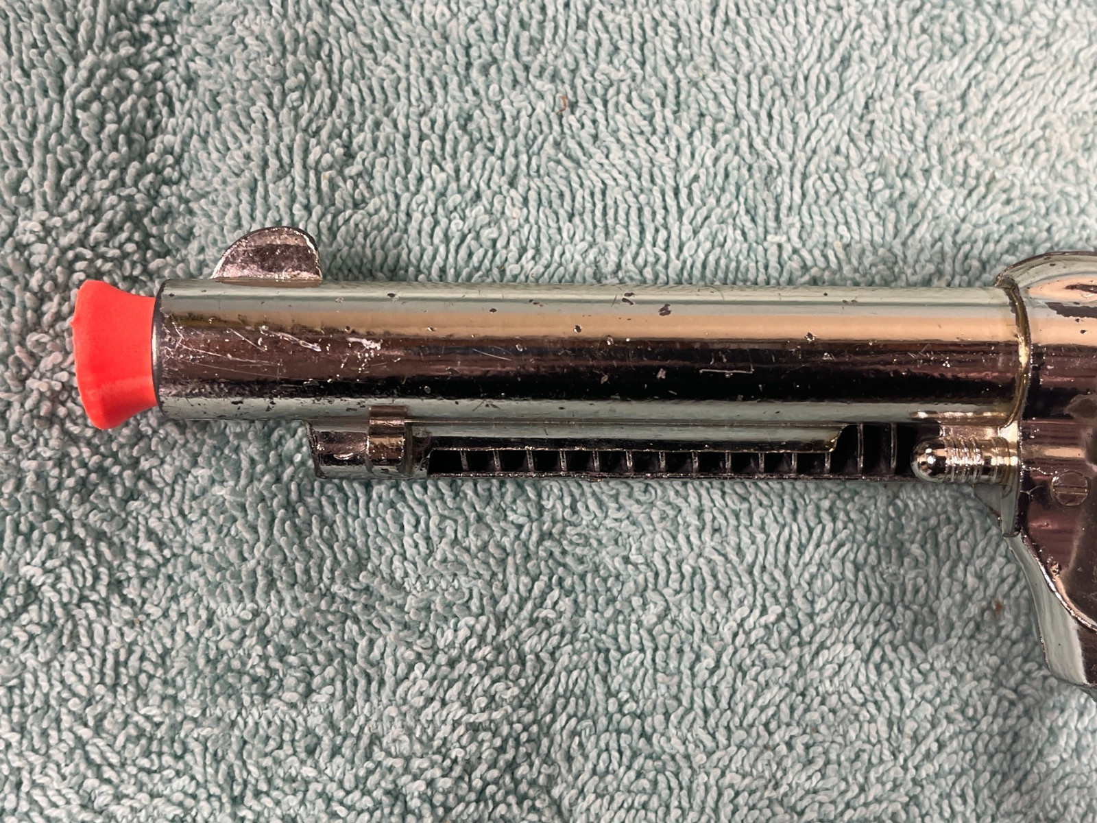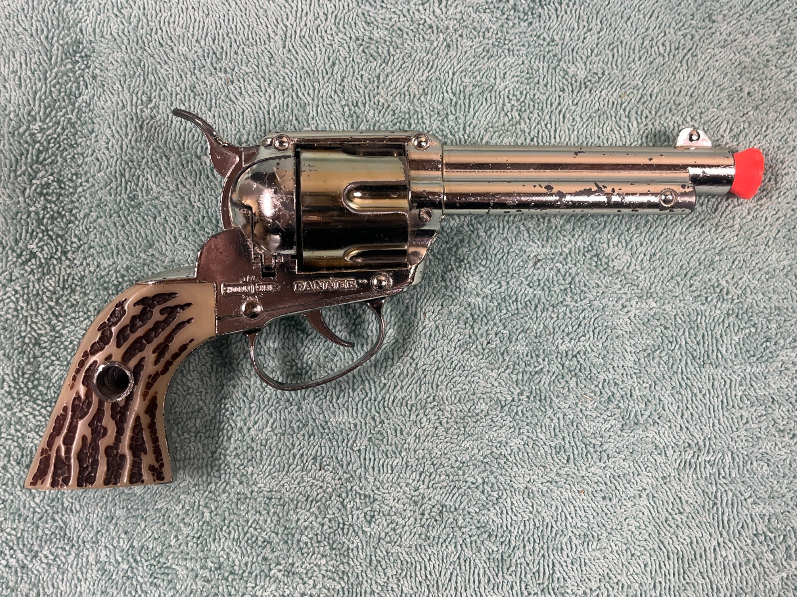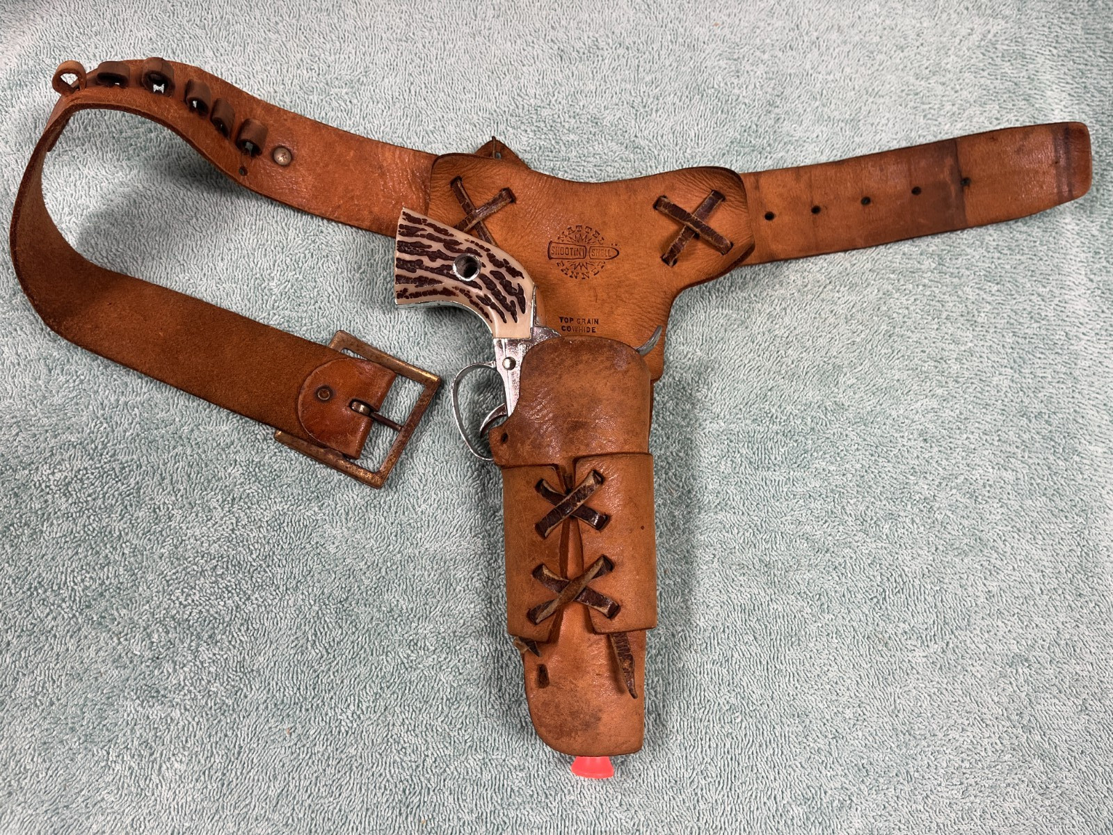 как выглядит VINTAGE 1950 s Mattel Shootin Shell Fanner Cap Gun and Leather Gun Holster фото