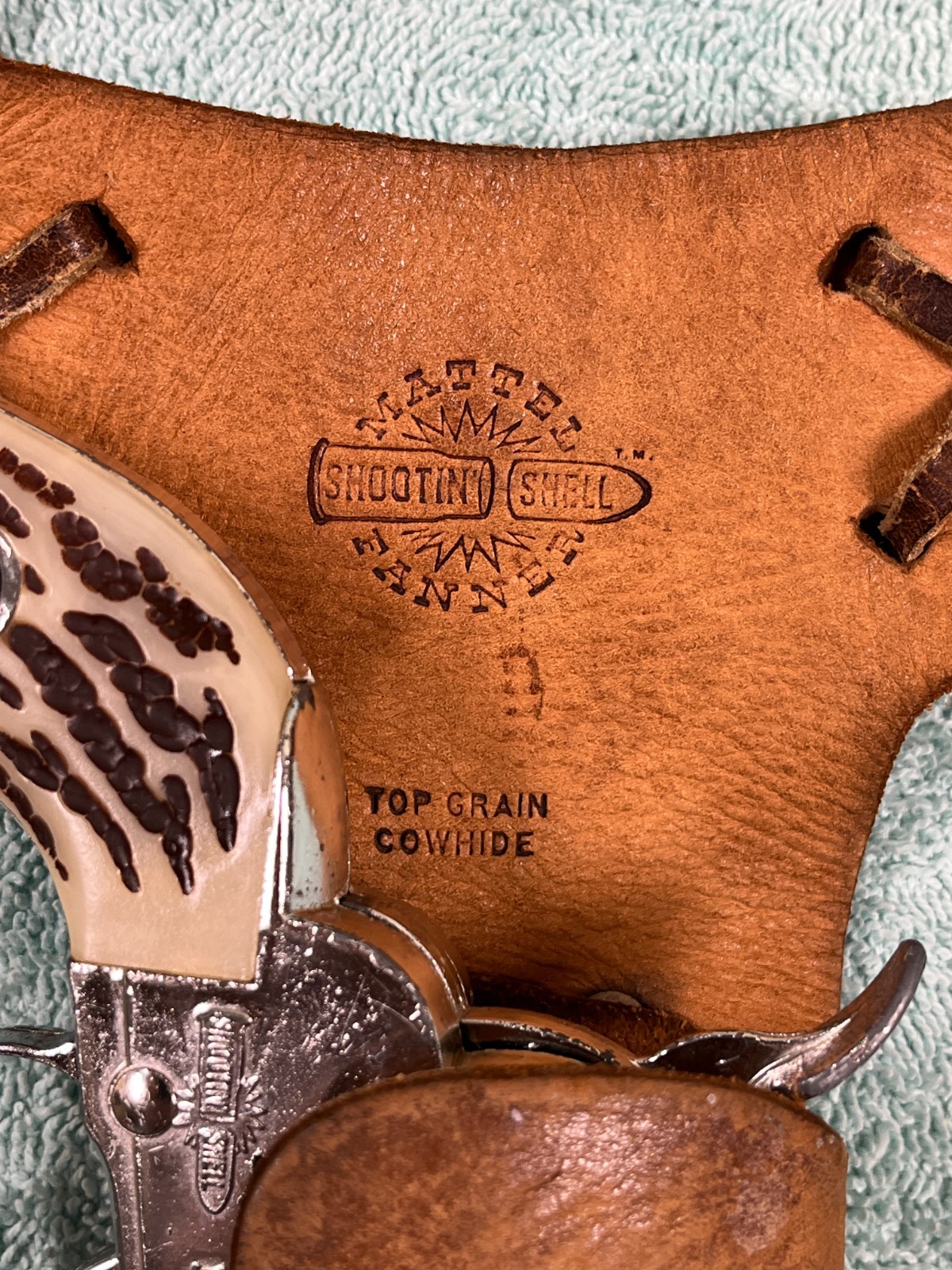 VINTAGE 1950 s Mattel Shootin Shell Fanner Cap Gun and Leather Gun Holster