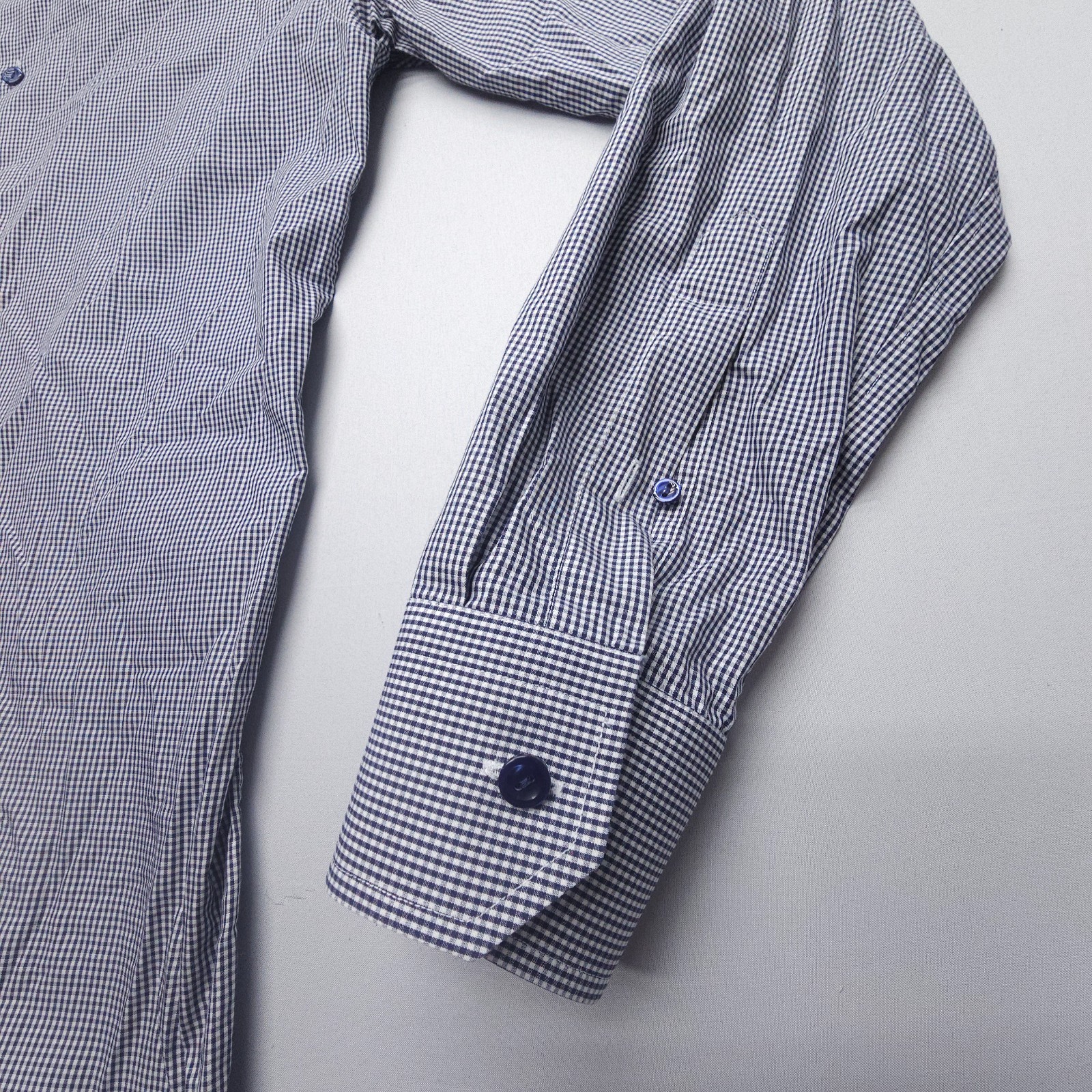 Eton Slim Dress Shirt Mens 15 / 38 Blue White Gingham Check Cotton Spread