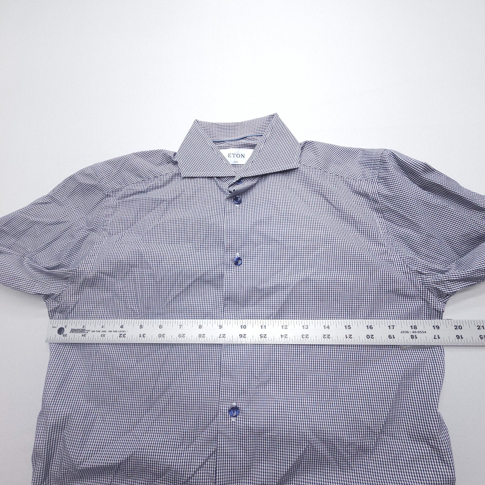 как выглядит Eton Slim Dress Shirt Mens 15 / 38 Blue White Gingham Check Cotton Spread фото
