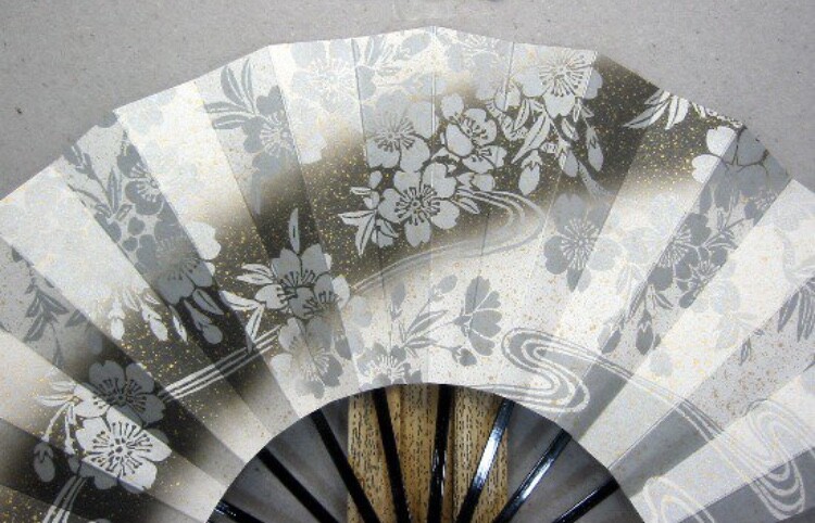 • Japanese Folding Fan KYOTO Sensu Dance Ougi SAKURA Cherry blossom Black 1597 F/S