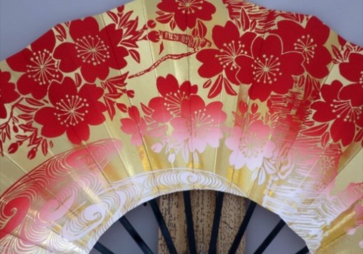 • Japanese Folding Fan KYOTO Sensu Dance Mai-ougi SAKURA Cherry blossoms Red 2405