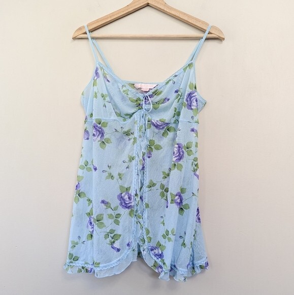 Vintage Coquette Y2K Victoria's Secret Fairy Floral Mesh Babydoll Slip Dainty L