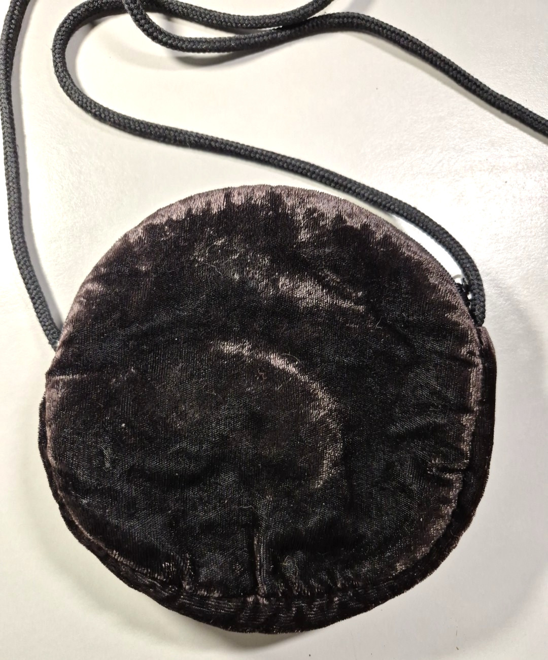 как выглядит Embroidered Round Crossbody Floral Bag Black Velour Circle Vintage Grannycore фото