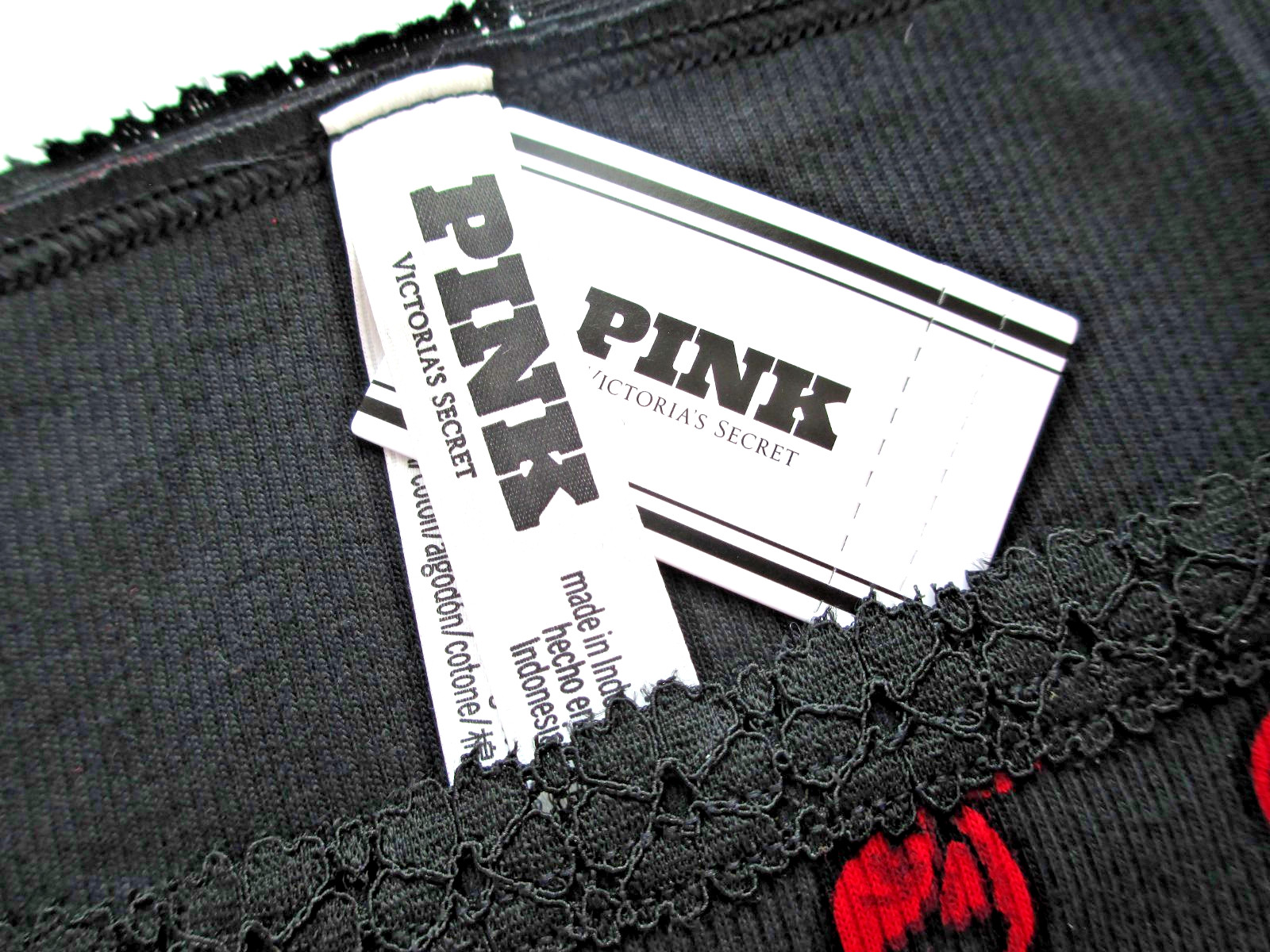 VICTORIA'S SECRET PINK Cotton String Bikini Panty S M L XL Black Red Cherries VS