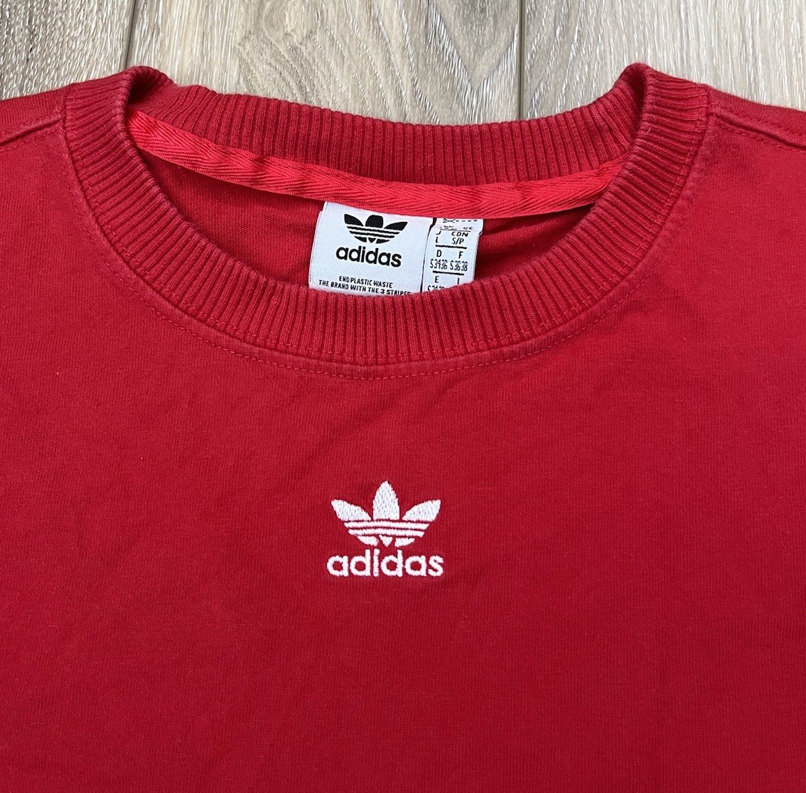 как выглядит Adidas Originals Red Center Trefoil Embroidered Logo Short Sleeve Tee Mens Sz S фото