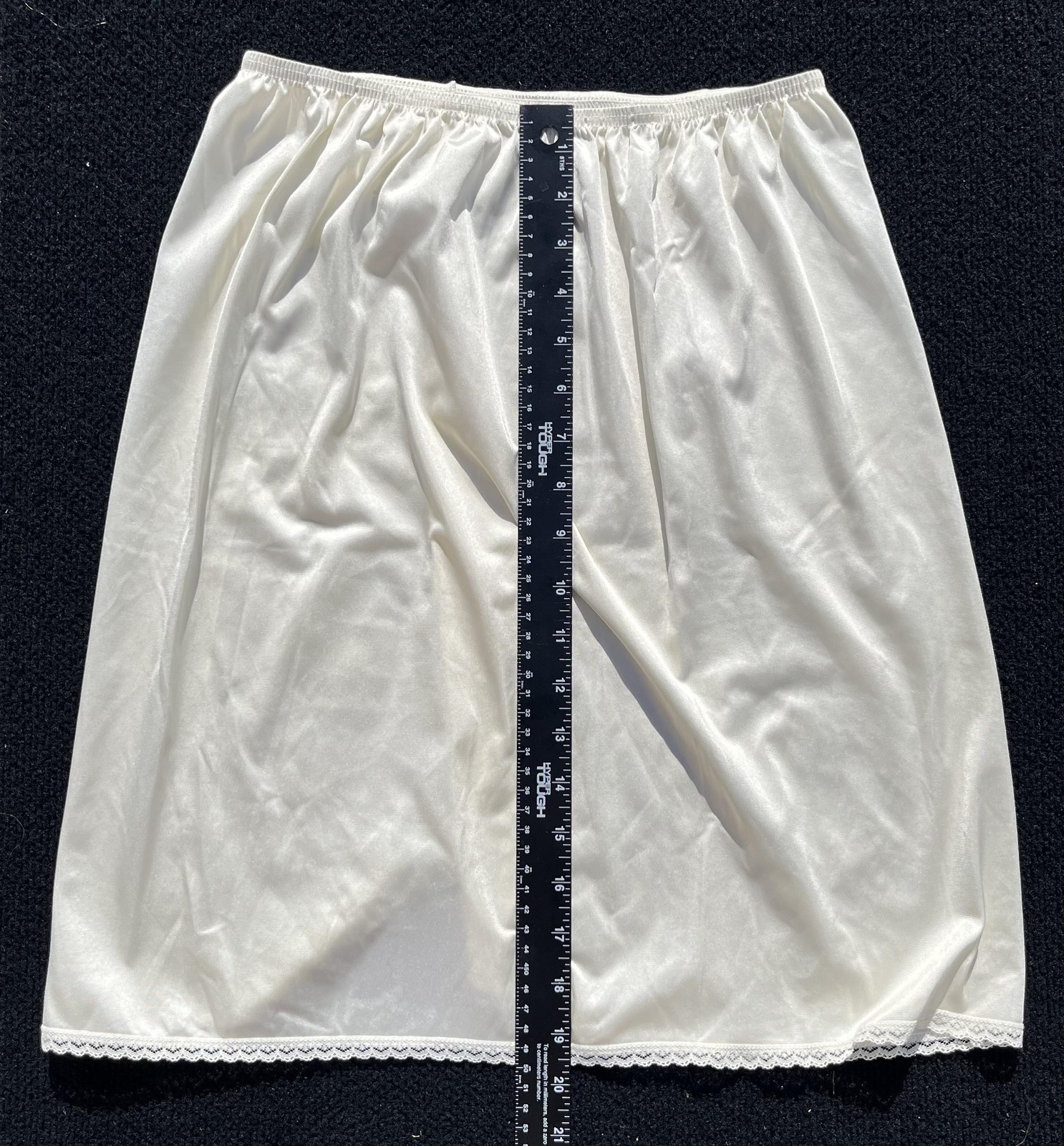 Vanity Fair Half Slip Womens Medium White Nylon Lace Trim 20 Inch Made in USA