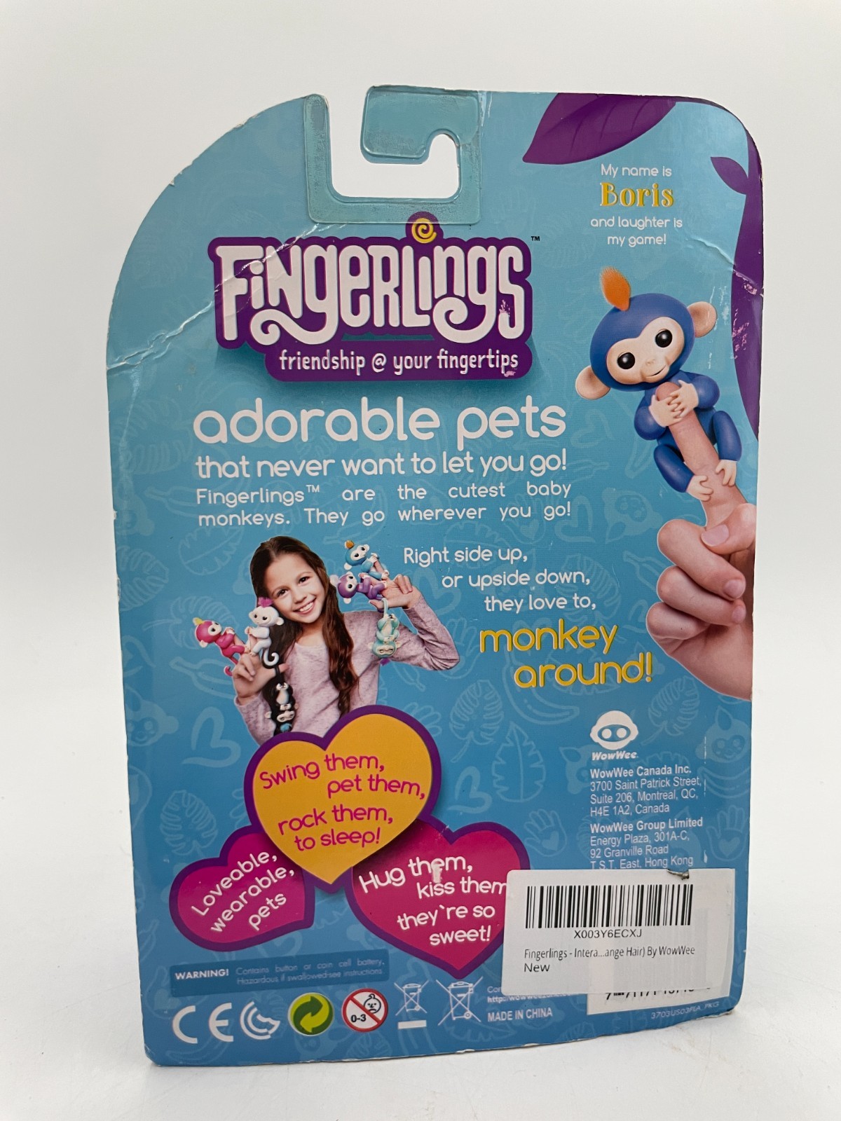 как выглядит New Fingerlings BORIS Blue Orange Hair Toy Finger Monkey Bonus Stand фото