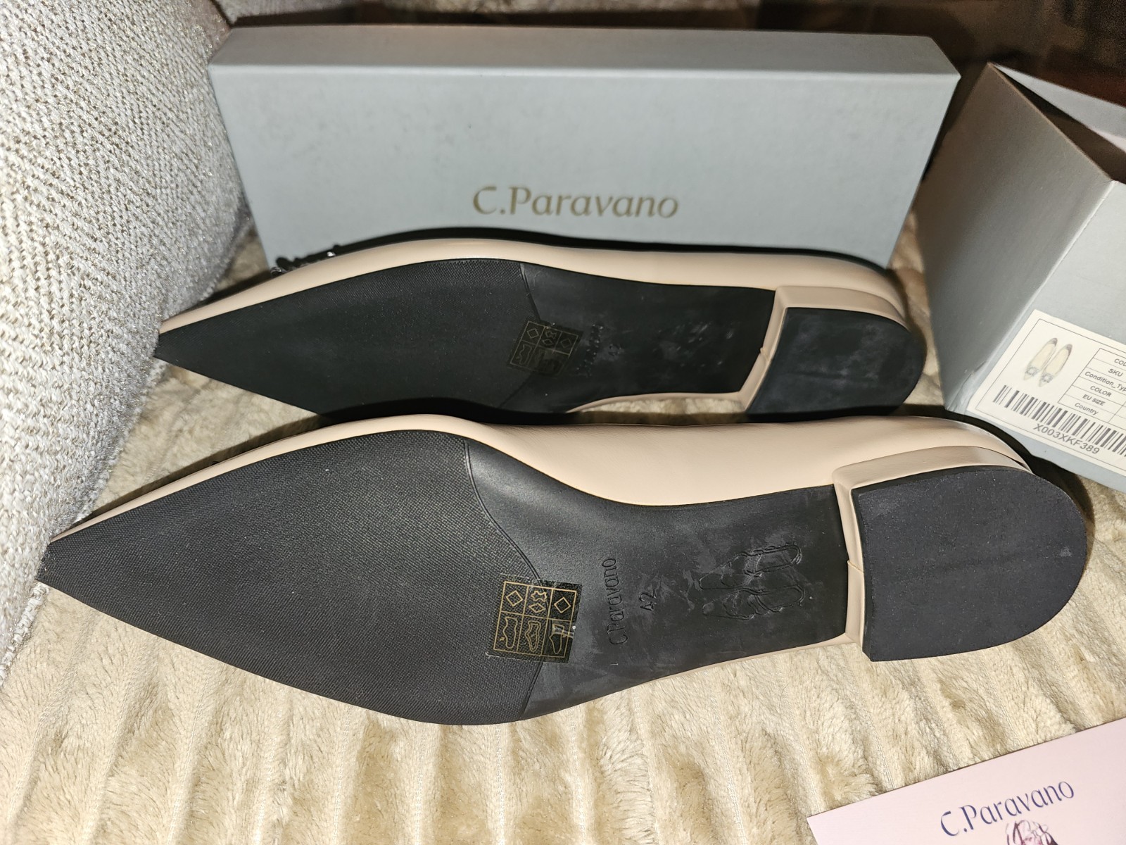 C.Paravano Crystal Buckle Ballet Flats, Pointed Toe, Dressy Shoes 42 US 11.5 Tan