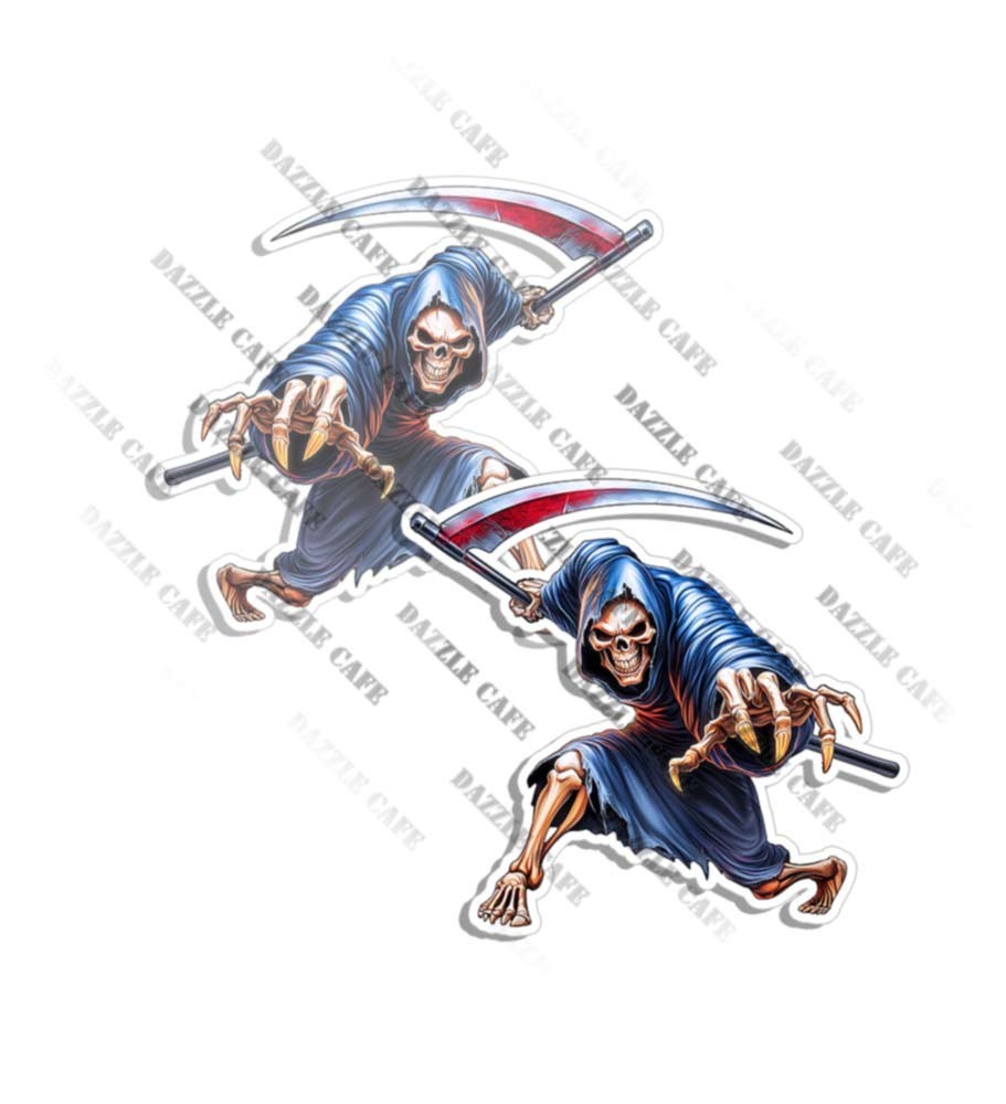 Grim Reaper Die Cut Decal Death Skull Vinyl Sticker Made in USA 2 PK