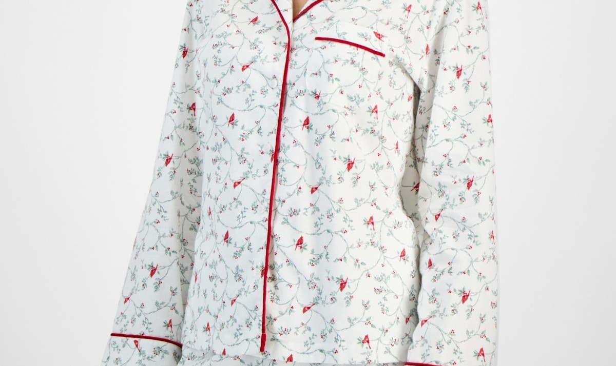 Charter Club Petite Women's Long-Sleeve Cotton Flannel Packaged Pajama Set PS