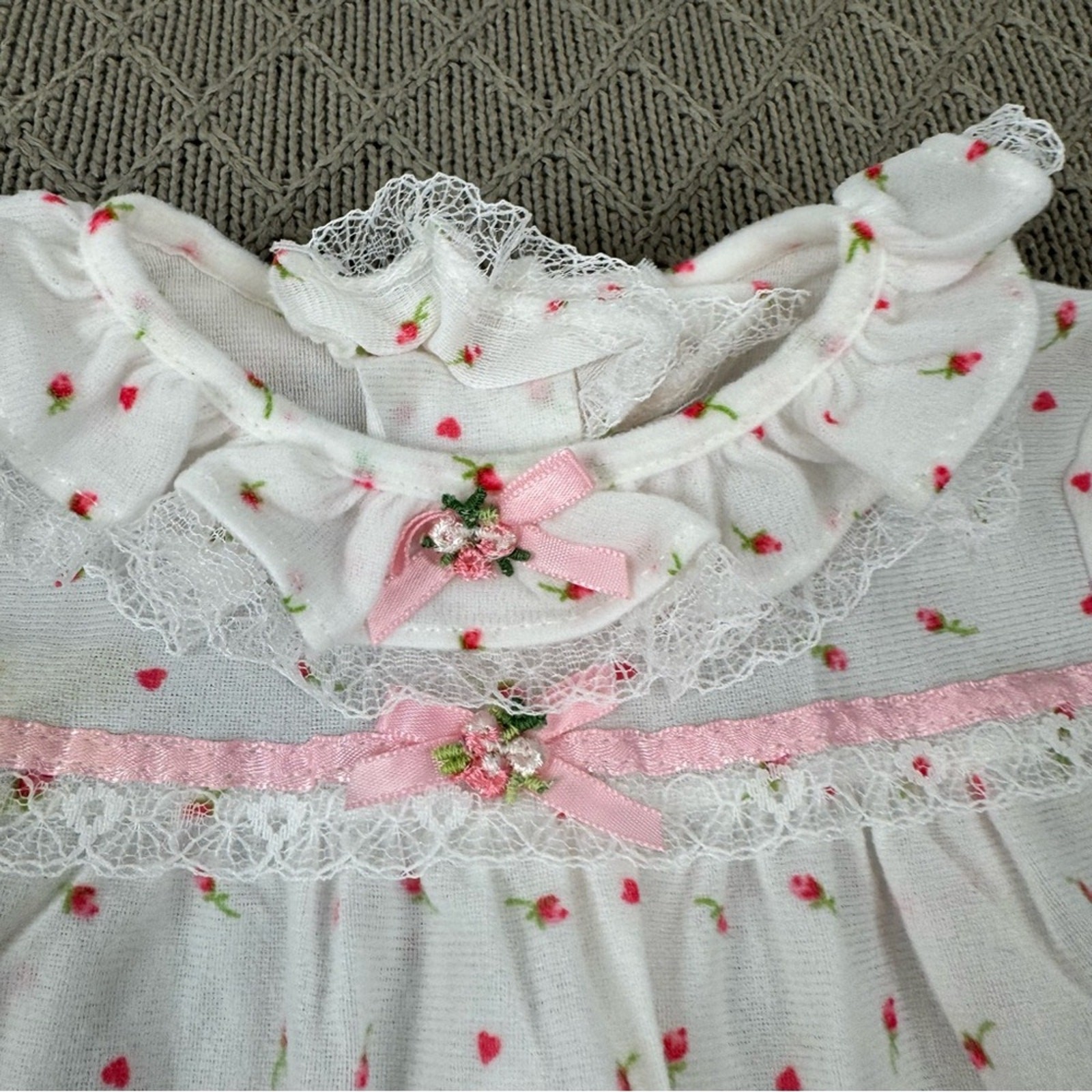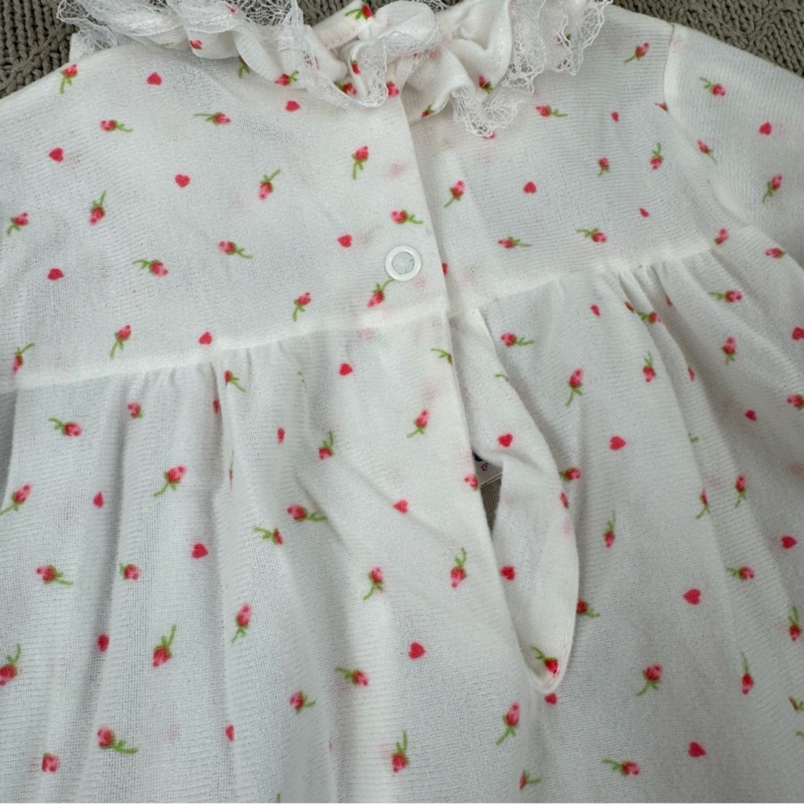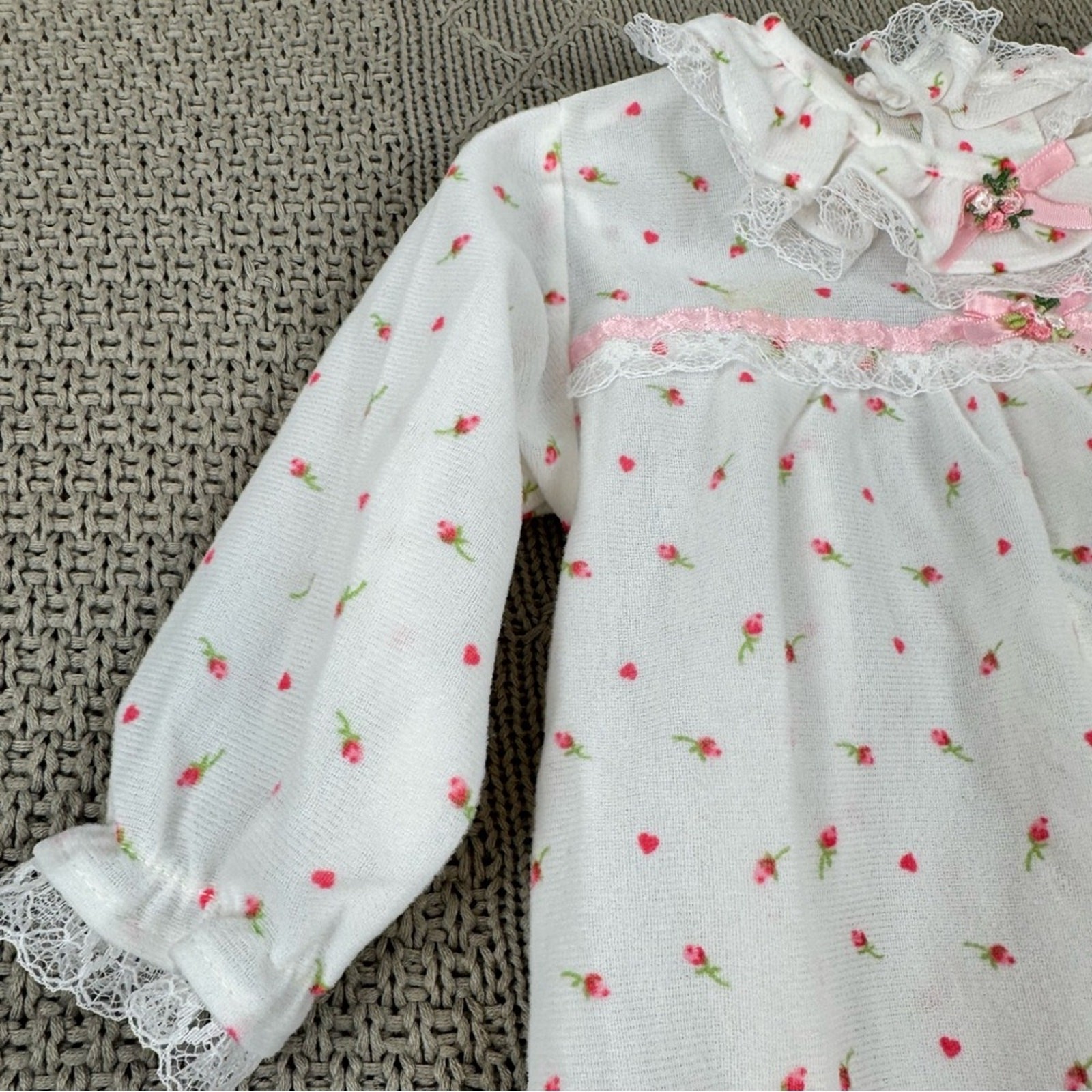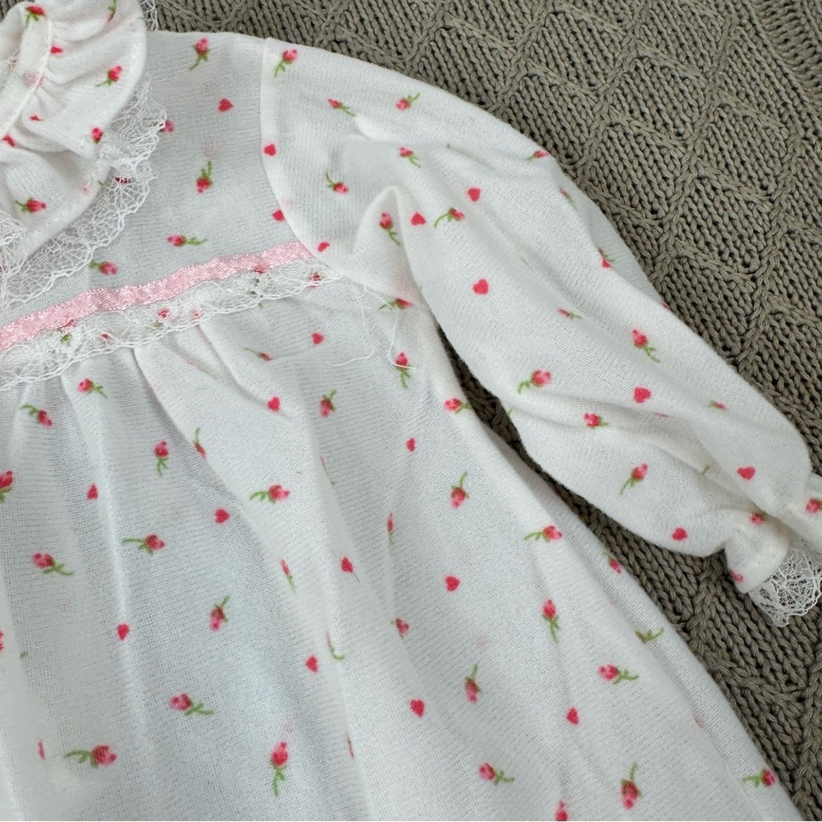 Alexis Vintage White and Pink Rosette Girls Nightgown 90s 80s 13-18lbs