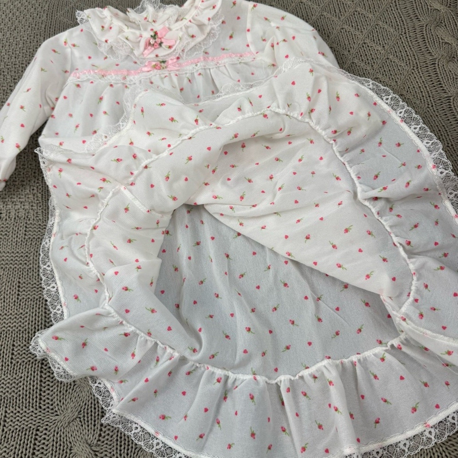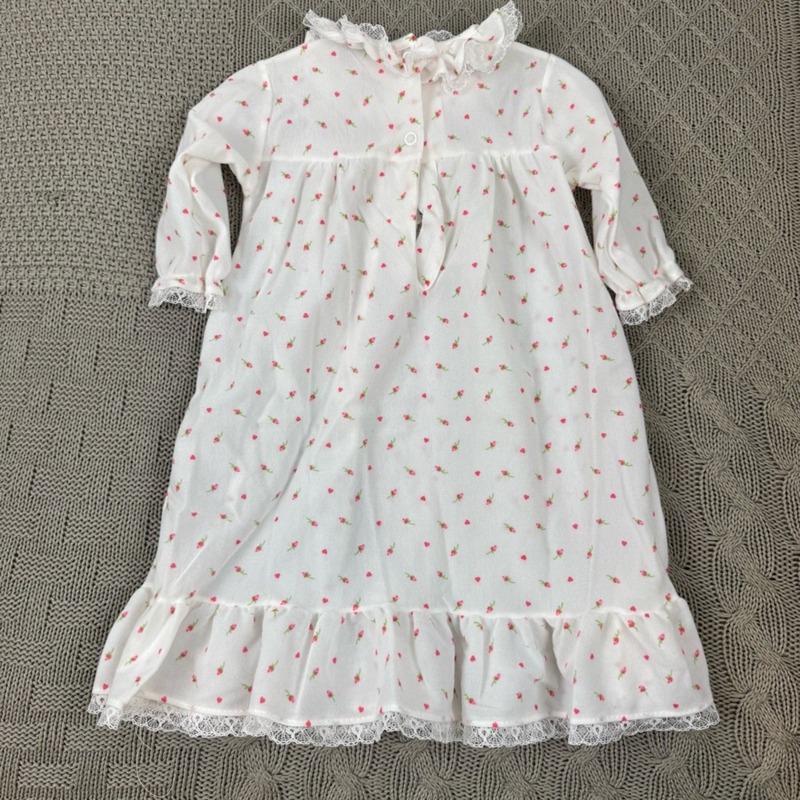 как выглядит Alexis Vintage White and Pink Rosette Girls Nightgown 90s 80s 13-18lbs фото