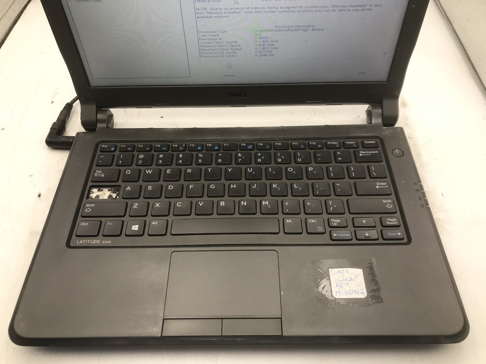 DELL LATITUDE 3340 - BOOTS TO BIOS/LOCKED - INTEL CELERON 2957 - NO RAM -READ-BB