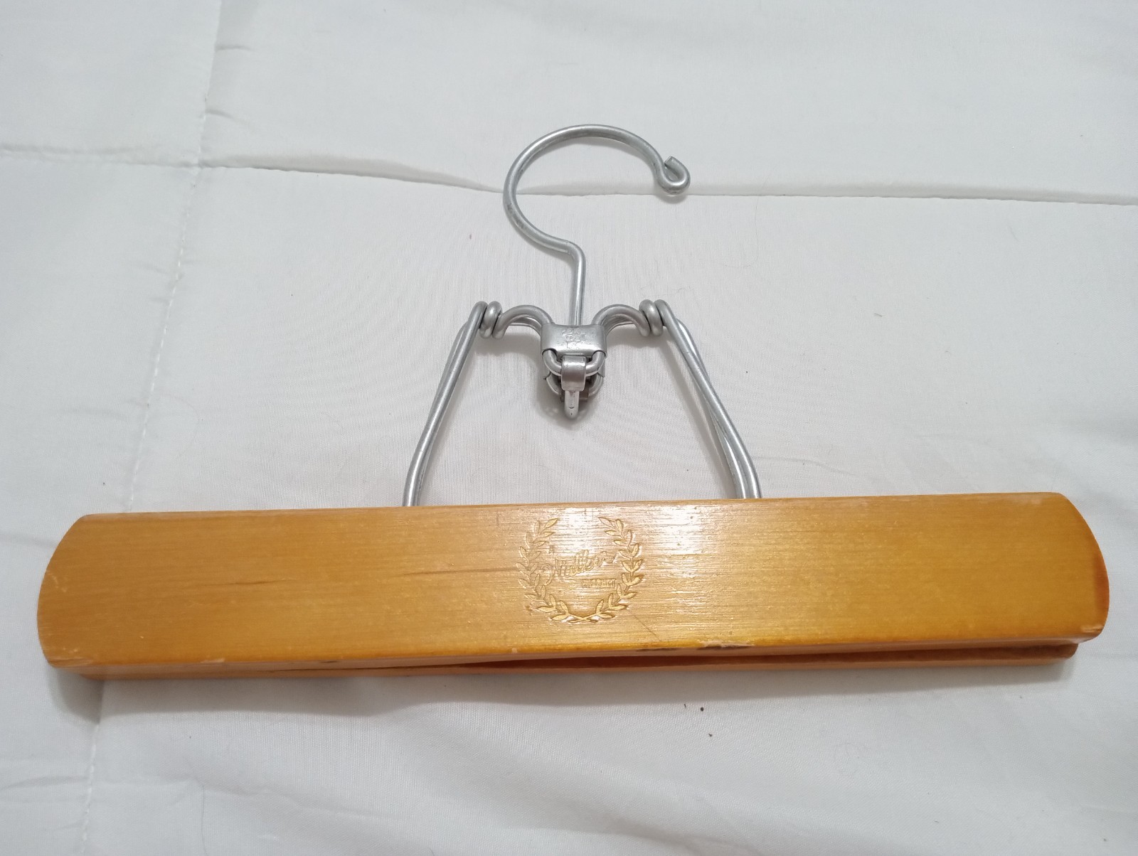 как выглядит lot of 5 vintage wooden hangers batt setwell walker фото