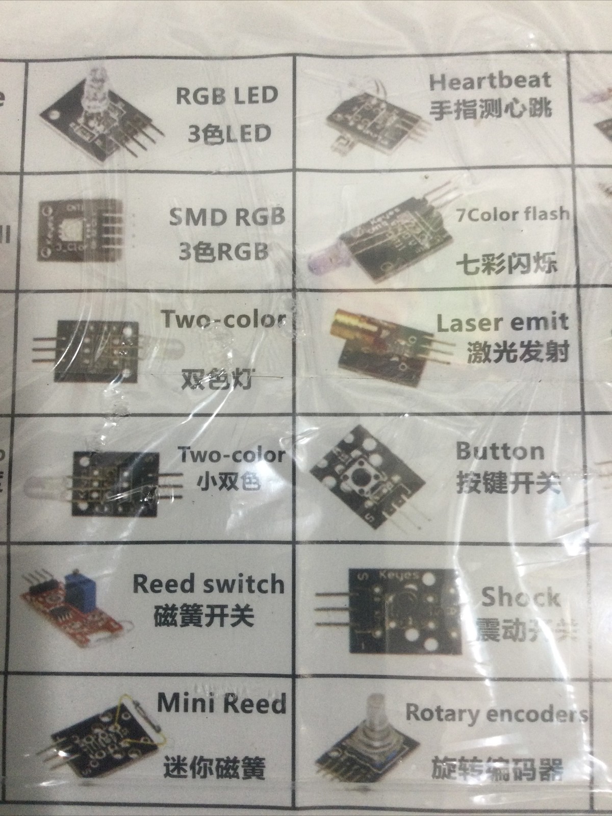 Особенности: USB, Passive Buzzer Module, 2-Color LED Module, Hit Sensor Module, Vibration Switch Module, Photo Resistor Module, Key Switch Module, Tilt Switch Module, Infrared Sensor Module, 3-Color LED Module, Tilt Open Optical Module, Yin Yi 2-Color LED Module 3MM, Active Buzzer Module, Temperature Sensor Module, Mini Magnetic Reed Module, Infrared Sensor Receiver Module, Class Bihor Magnetic Sensor, Magic Light Cup Module, Rotary Encoder Module, Optical Broken Module, Heartbeat Detection Module, Reed Module