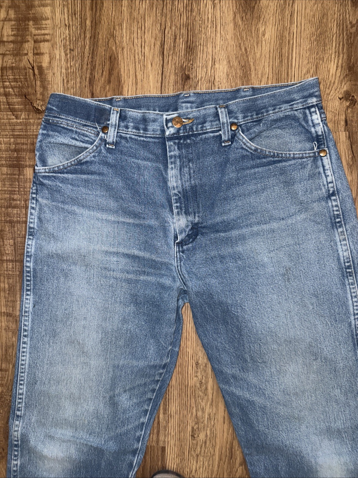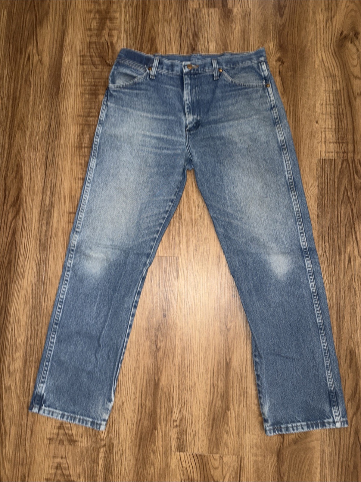 как выглядит Vintage Wrangler Jeans Mens 35x32 Light Blue Denim Cowboy Cut 13MWZ Mexico фото