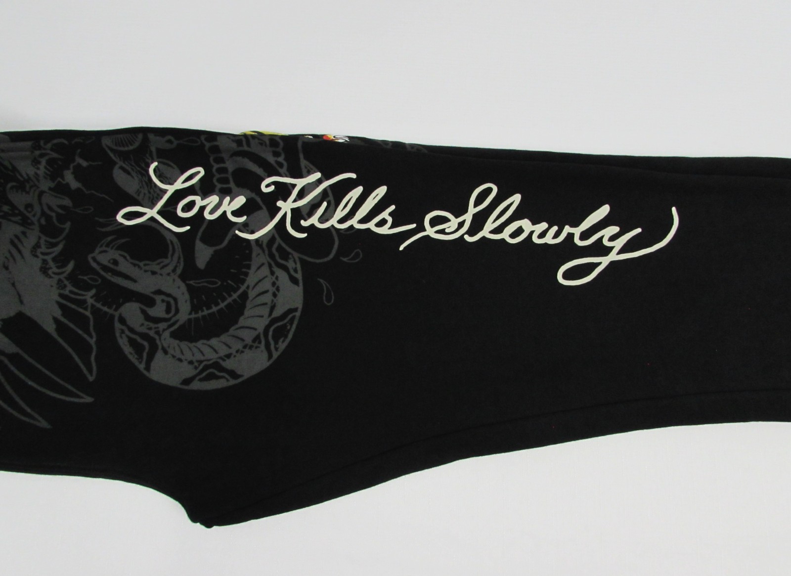как выглядит Ed Hardy Crawling Tiger Logo Sweatpants L Black Love Kills Slowly EHM8003-4 NWT. фото