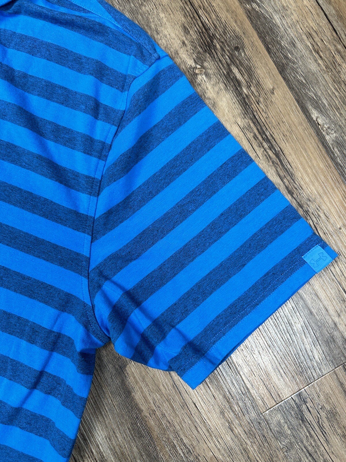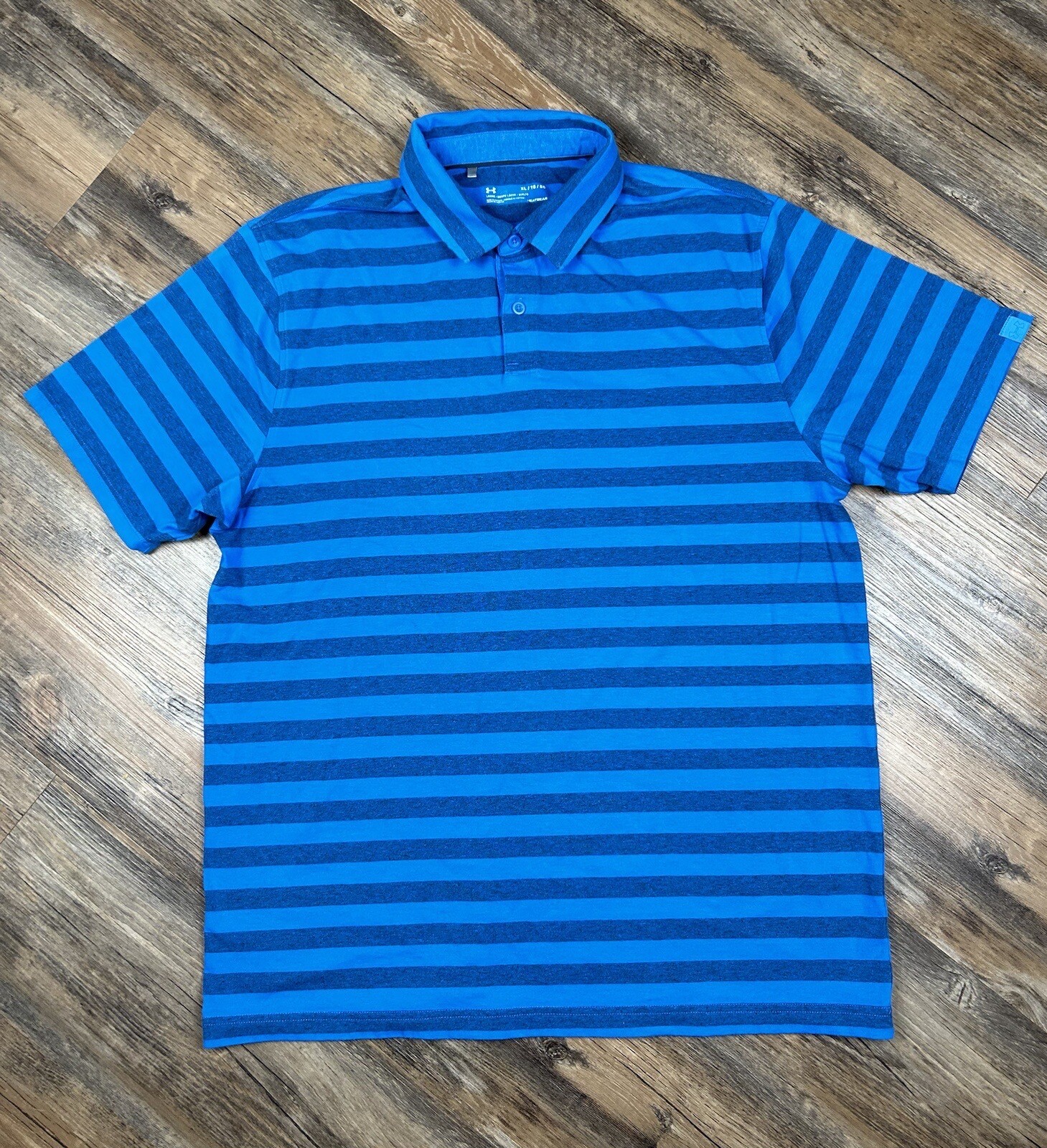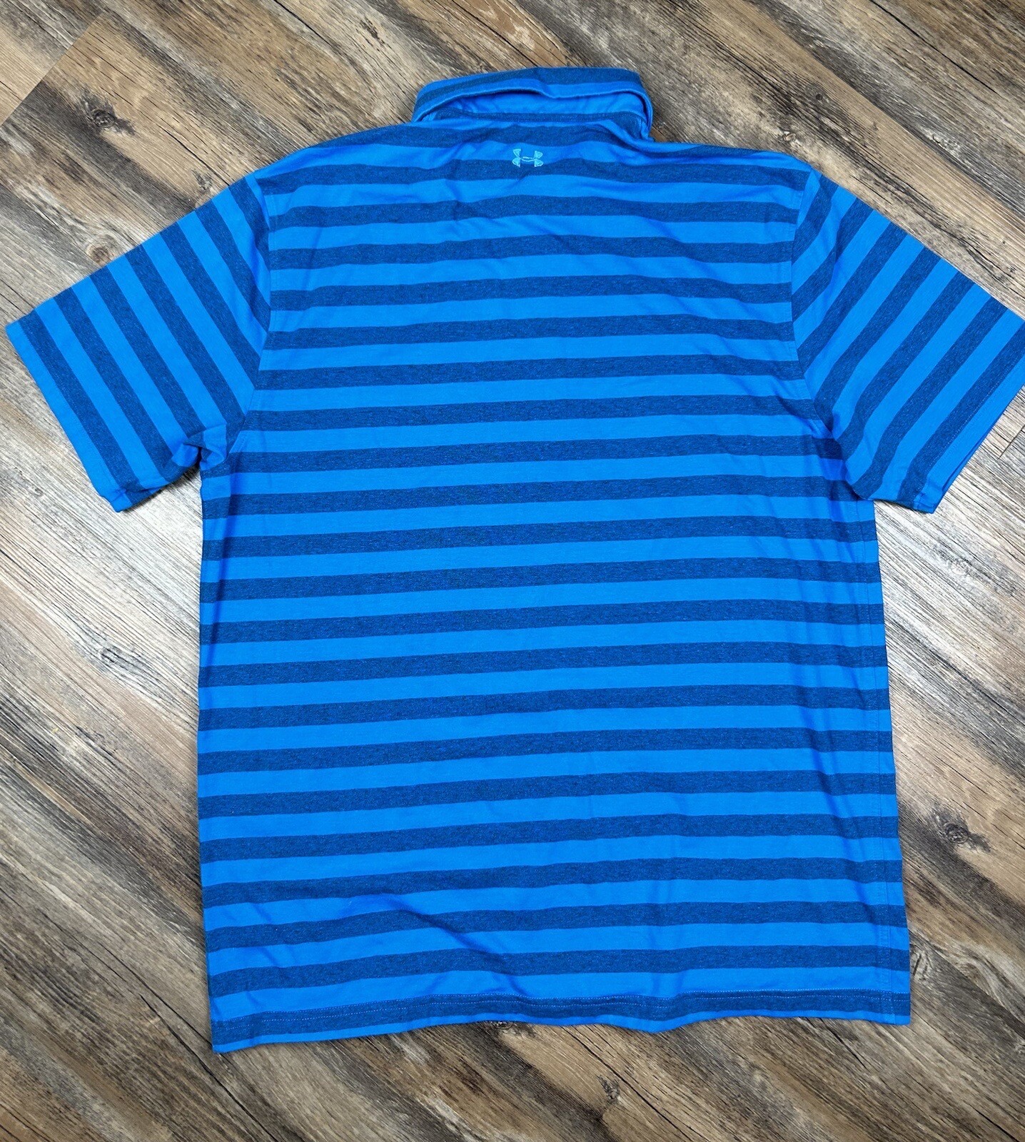 Under Armour Polo Shirt Men's XL Blue Stripe Heatgear Loose Fit EUC Golf Stretch
