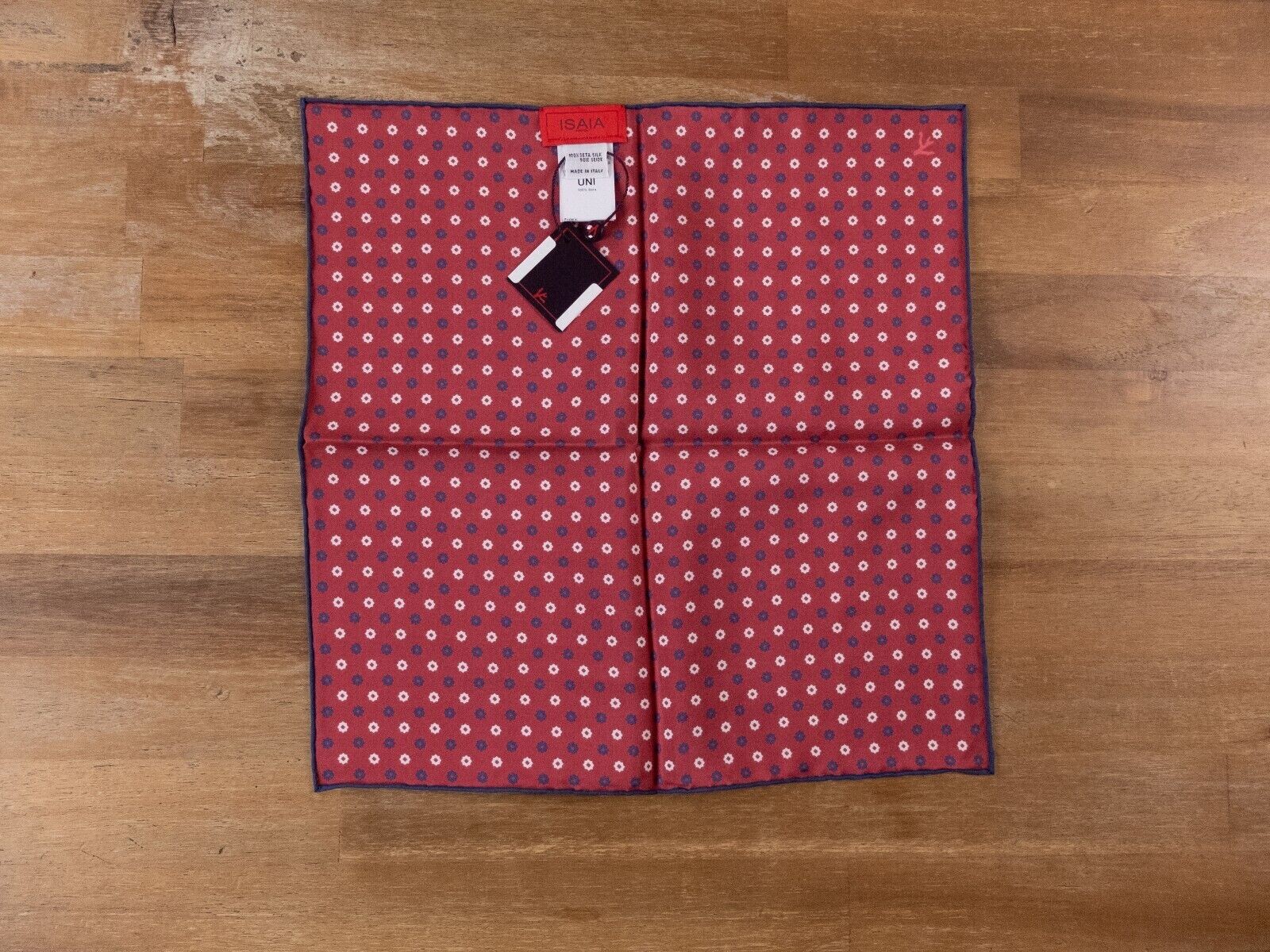 NO CUSTOMS TAX ISAIA Napoli red floral print silk pocket square authentic NWT