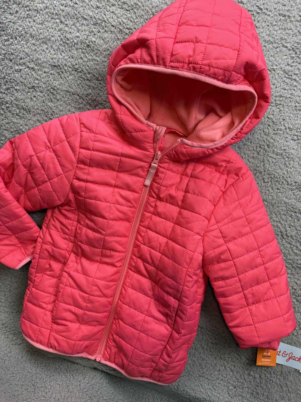 как выглядит Cat Jack Jacket Youth XS 4/5 Pink Hooded Quilted Fleece Lined Full Zip Coat фото