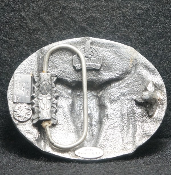 WK17139 NOS VINTAGE 1986 BUFFALO SKULL WESTERN ANIMAL MENS BELT BUCKLE