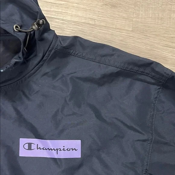 Champion Navy and Lavender Hooded Windbreaker Jacket medium