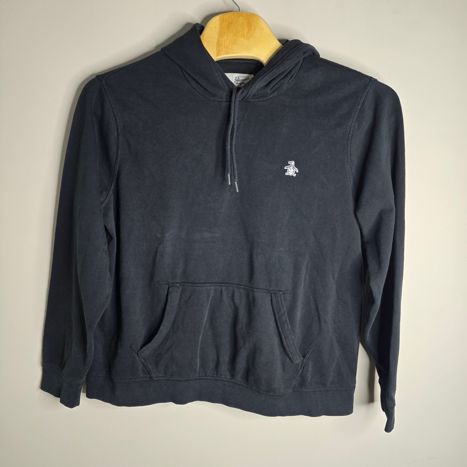 Original Penguin Mens Black Hoodie Chest Logo Pocket Pullover Casual Size XL