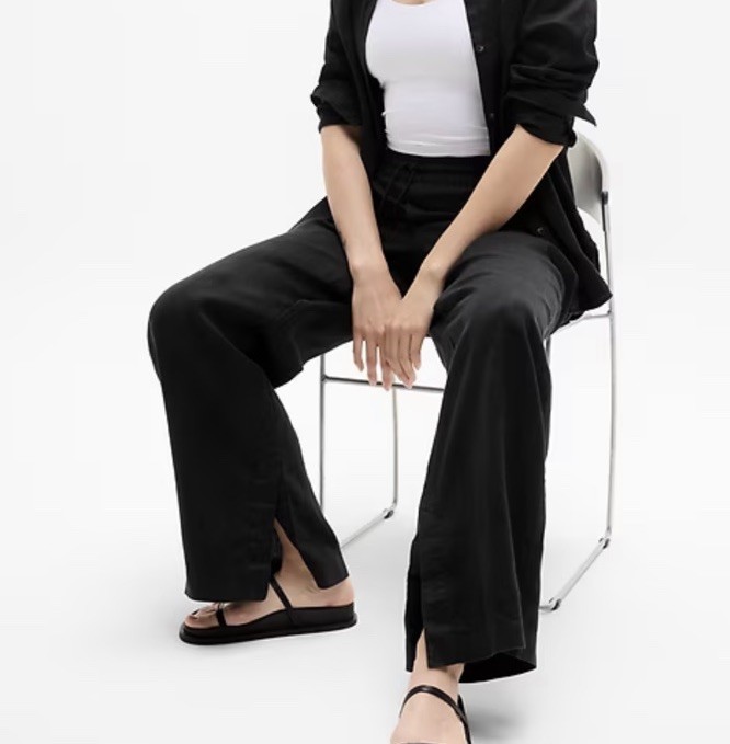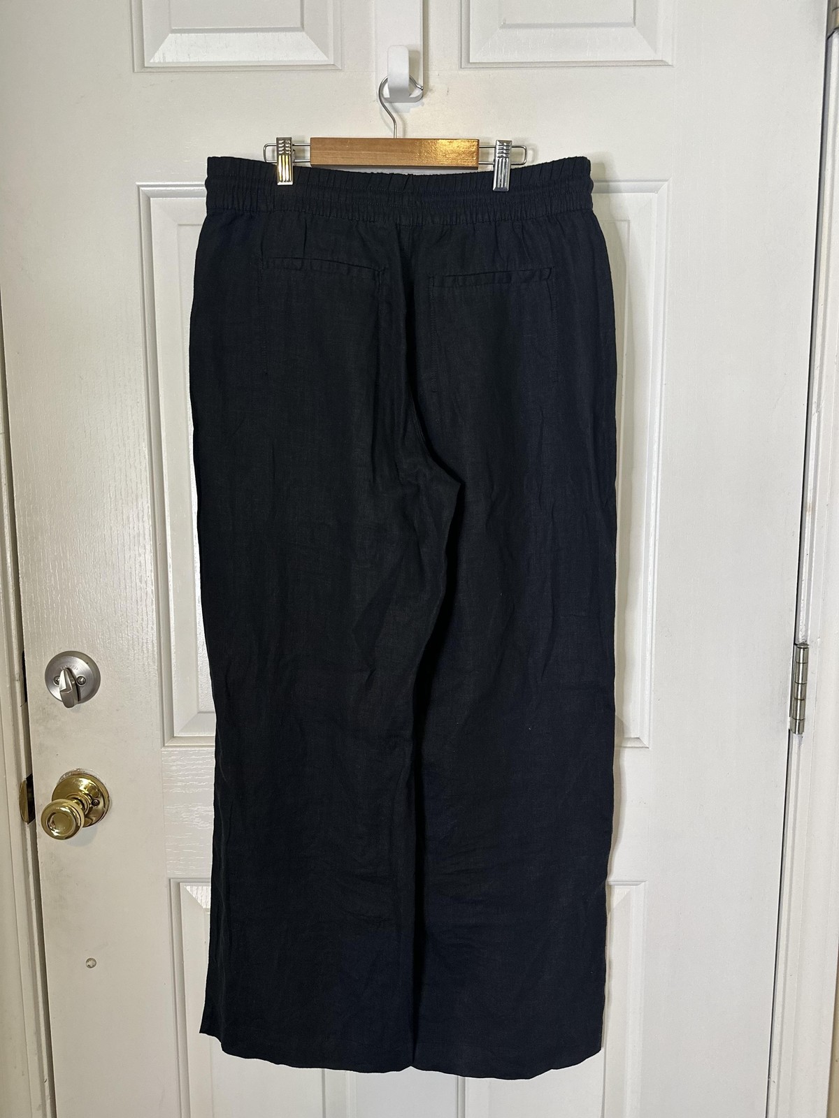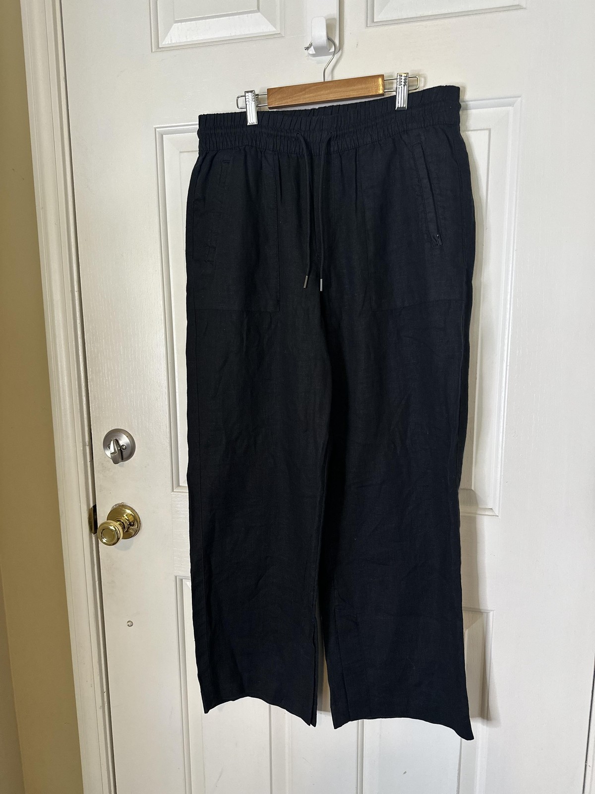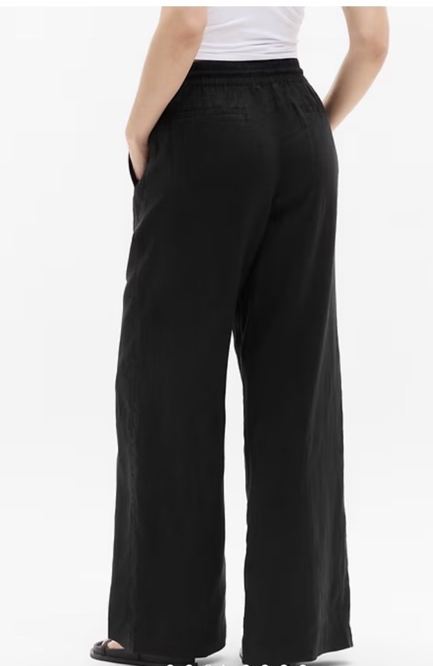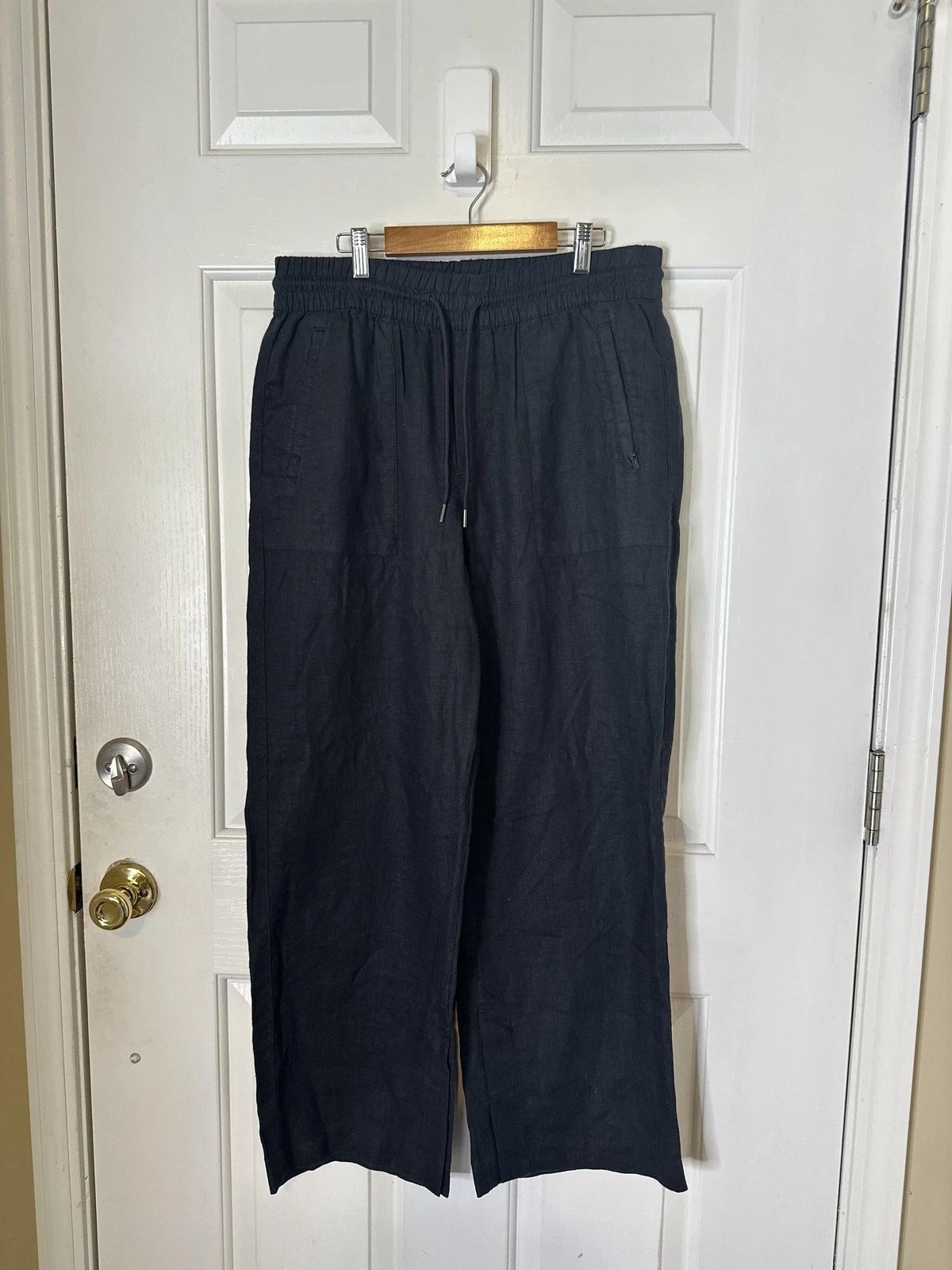 как выглядит Athleta Wide Leg Pants Women Med Retreat Linen Black Elastic Waist Travel Casual фото