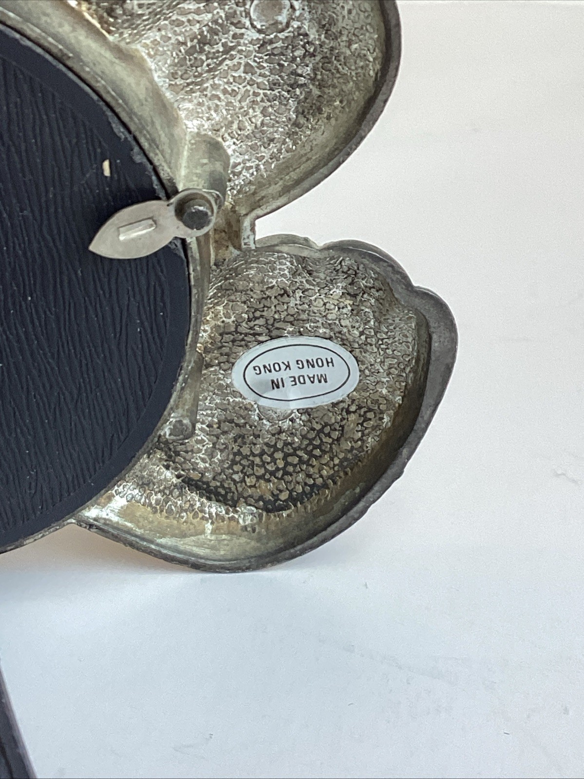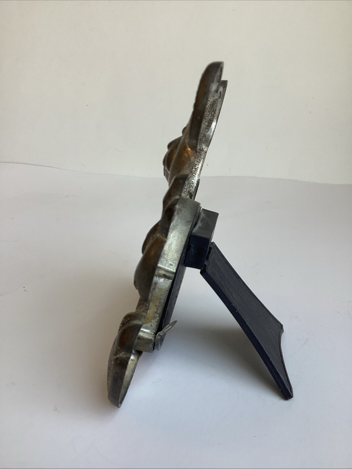 Vintage Pewter Teddy Bear Photo Picture Frame 5 Metal Free Standing Easel Baby