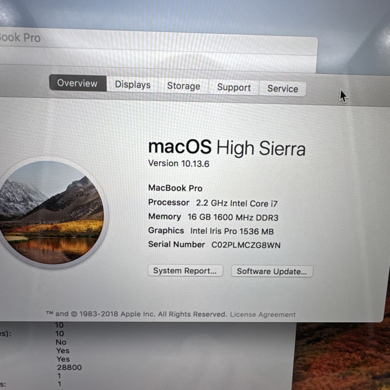Операционная система: macOS High Sierra 10.13.6