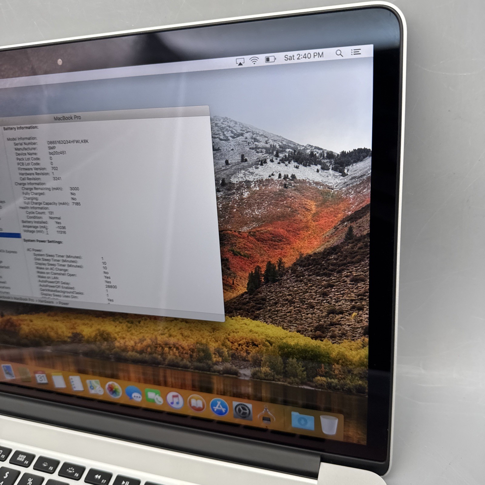 15 Apple MacBook Pro A1398 Core i7 2.2 GHZ 16GB RAM 256GB SSD
