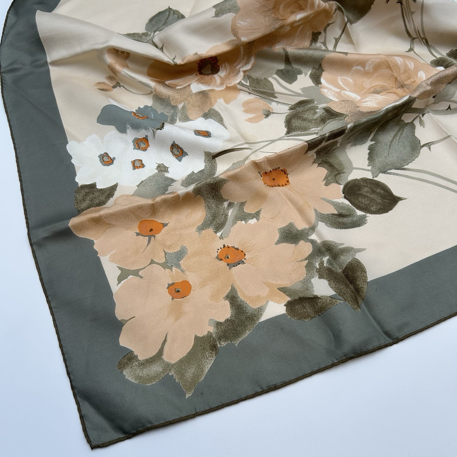 как выглядит Stunning Vintage Nina Ricci Flowers Hand Rolled Silk Scarf Made in France фото