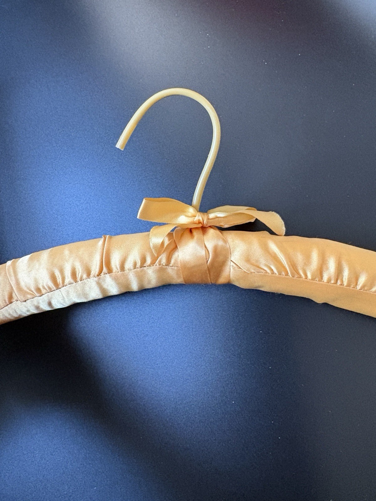 Vintage Golden Yellow Peach Satin Padded Lingerie Clothing Hanger Set of 9