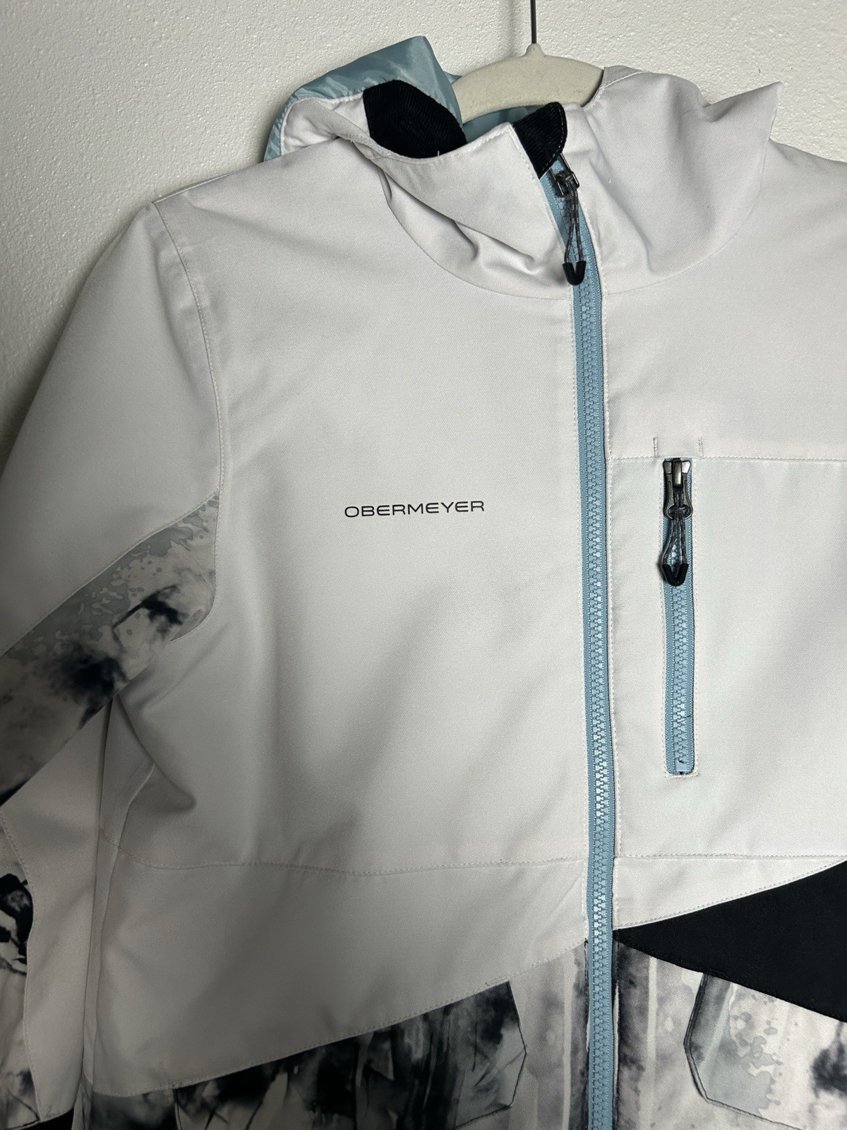 как выглядит Obermeyer Gage Junior White And Black Snow Ski Jacket Youth Medium фото