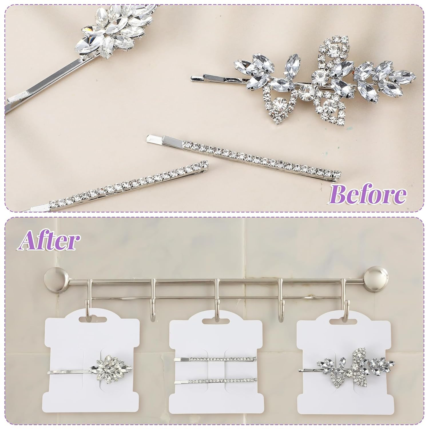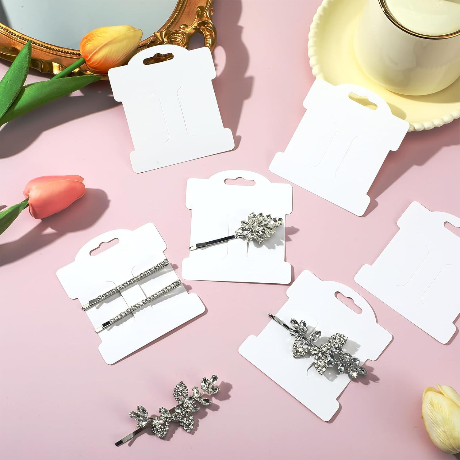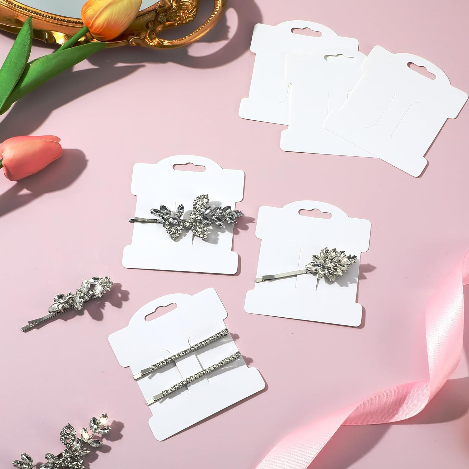 100PCS Hair Clip Display Cards, Hair Clips Bow Display Cards Rectangle Hairs Bar