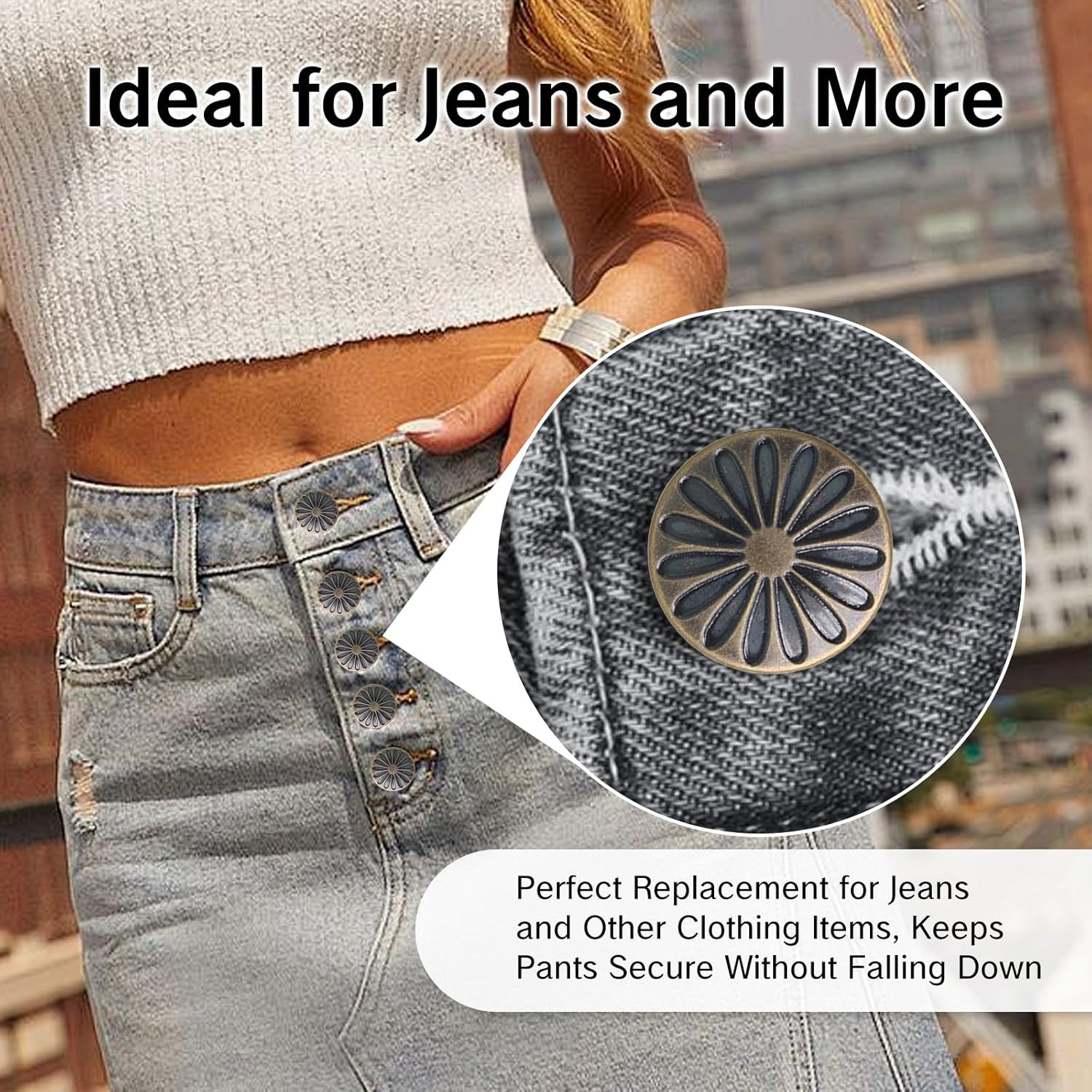 20 Sets Pants Buttons No Sew Metal Jean Buttons Kit for Heavy Duty Denim Repair