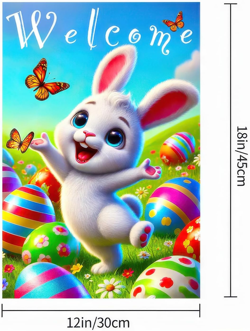 Happy Easter Garden Flag 12X18 Inch Double Sided Welcome Bunny Easter Egg Design