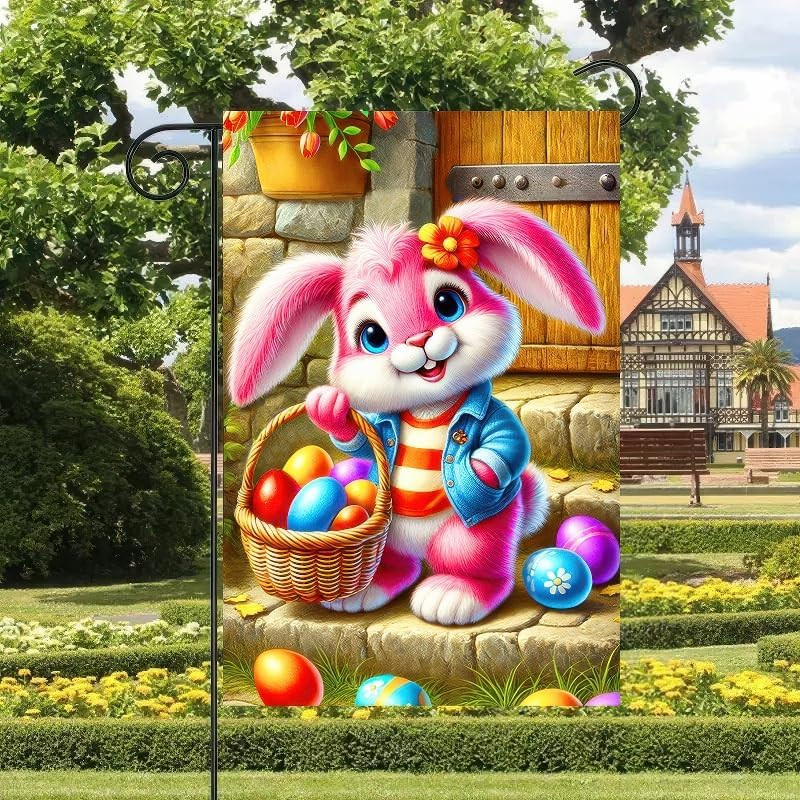 Easter Garden Flag 12X18 Inch Double Sided Cute Bunny Garden Flags Eggs Yard Fla